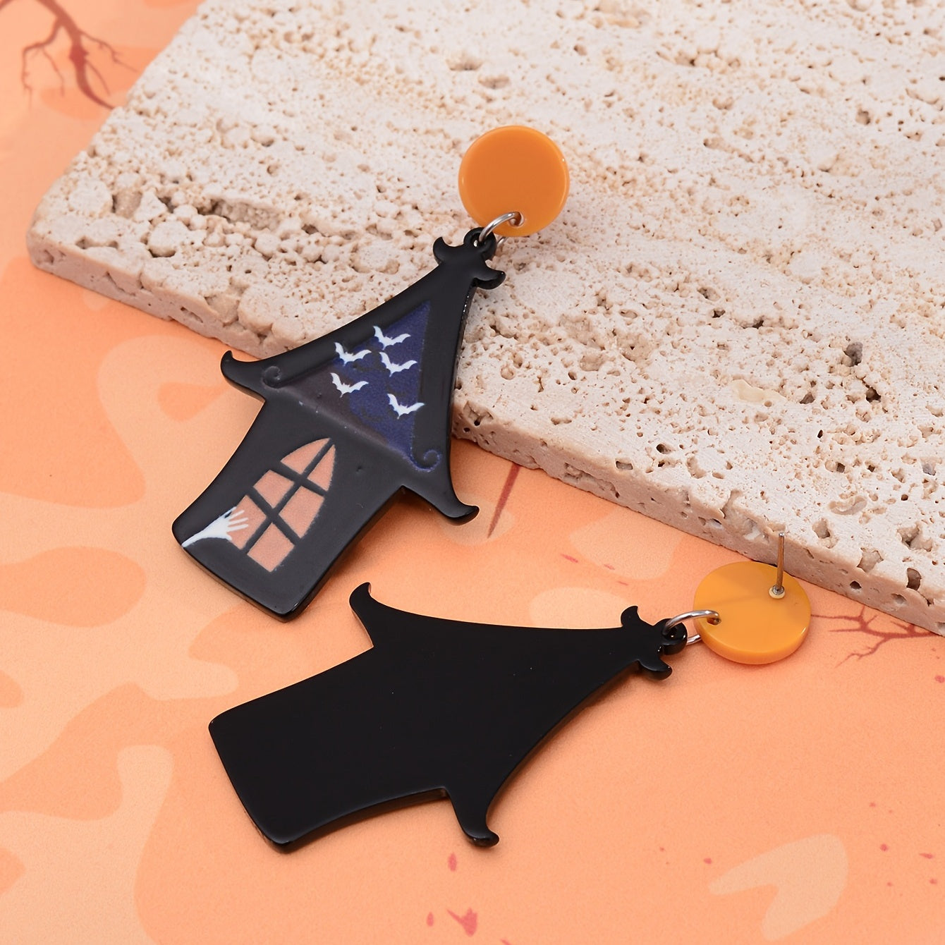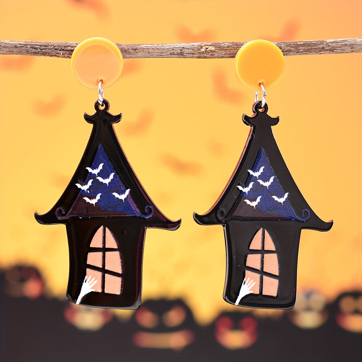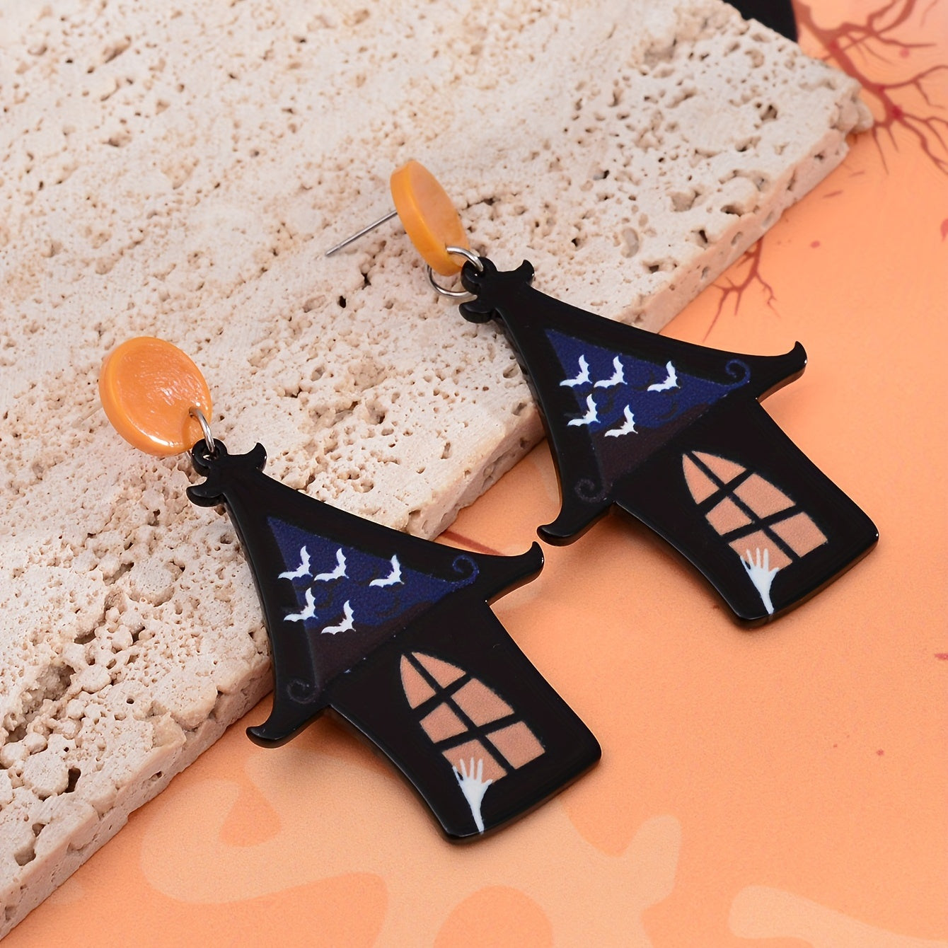 These isolated castle horror dangle earrings are perfect for Halloween, featuring a retro party style design made of acrylic. Ideal creative gift for females.