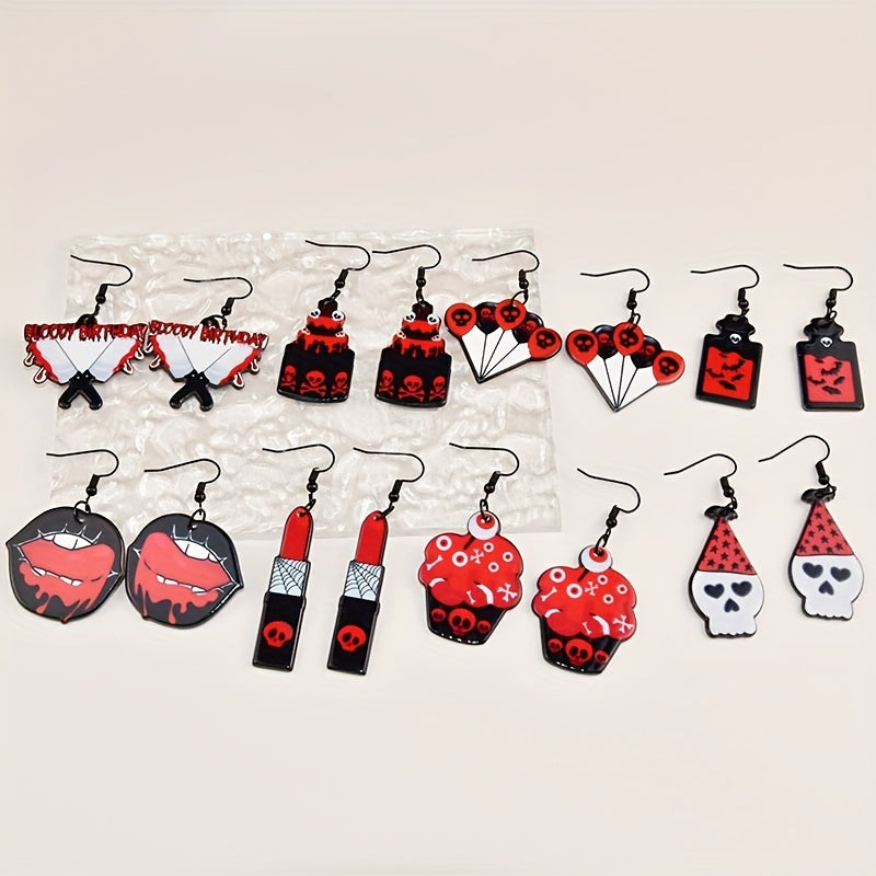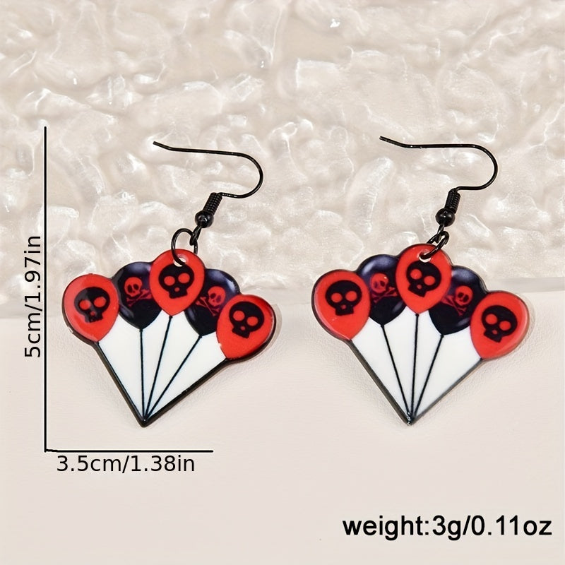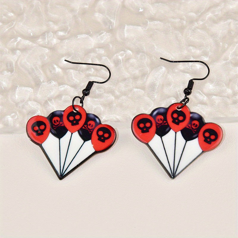 Spooky and festive earrings featuring horror skull balloon mouth and lipstick design. Perfect for adding a touch of Halloween spirit to your outfit.