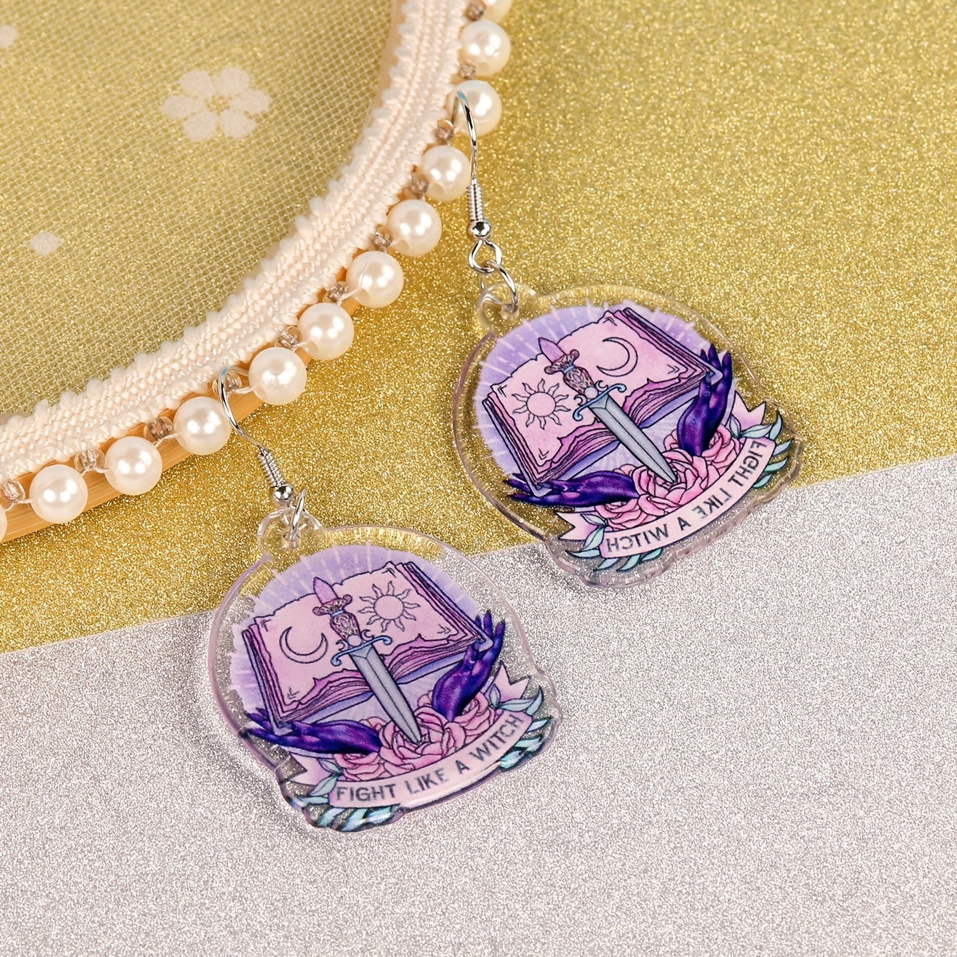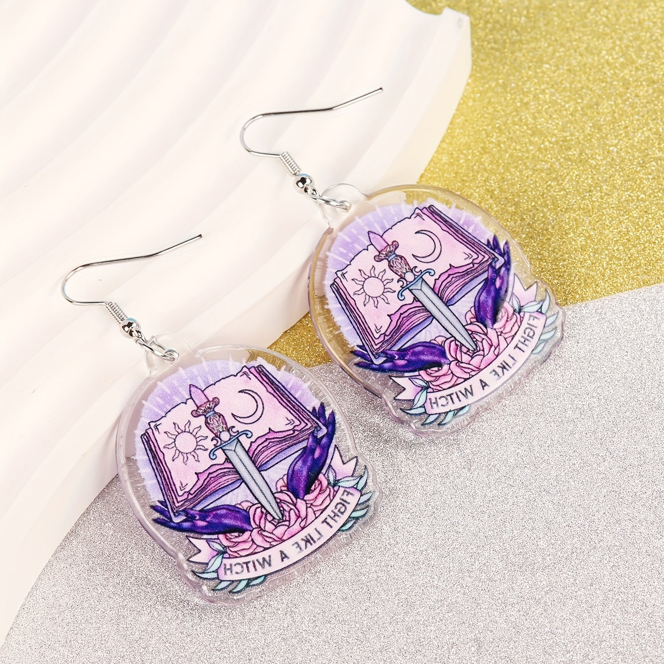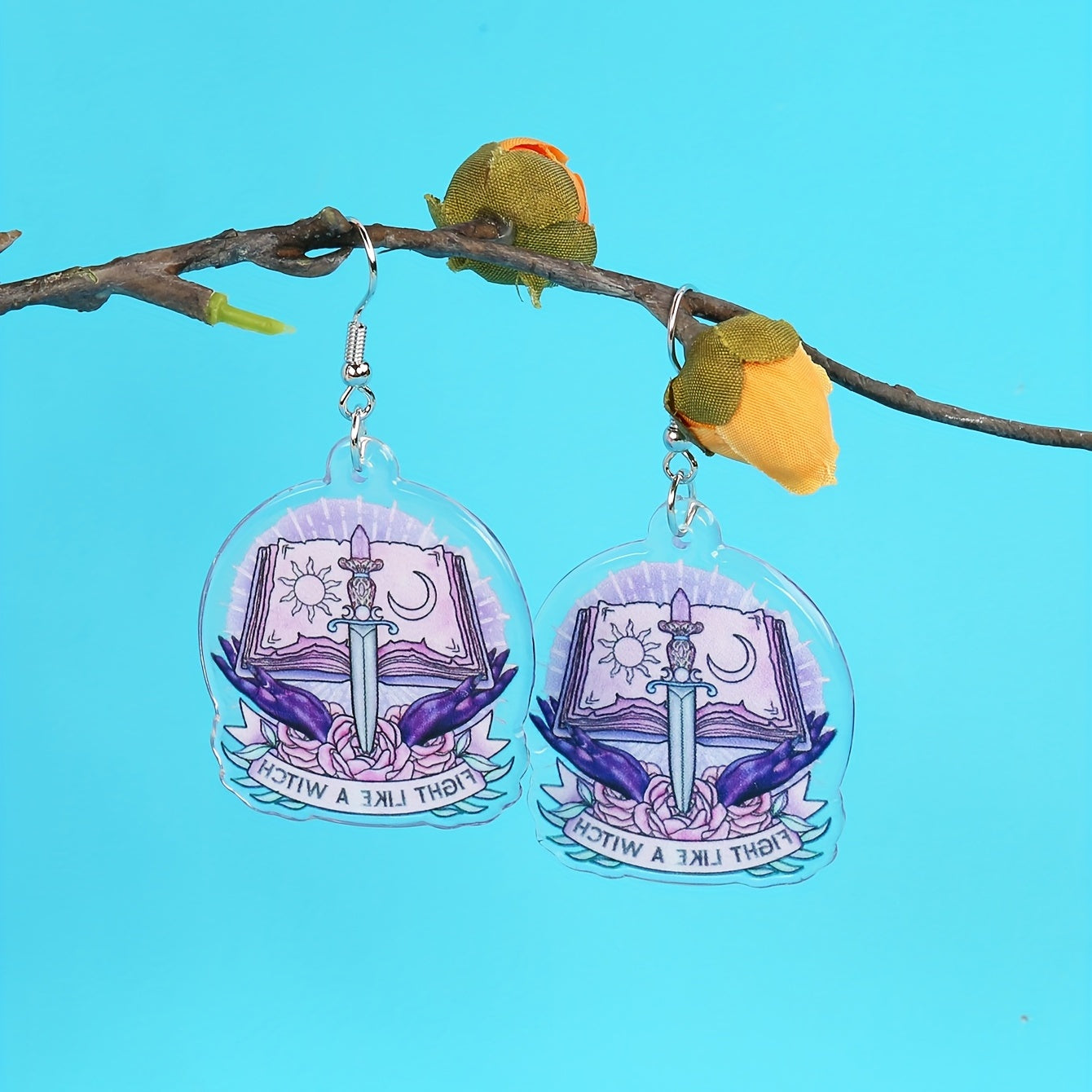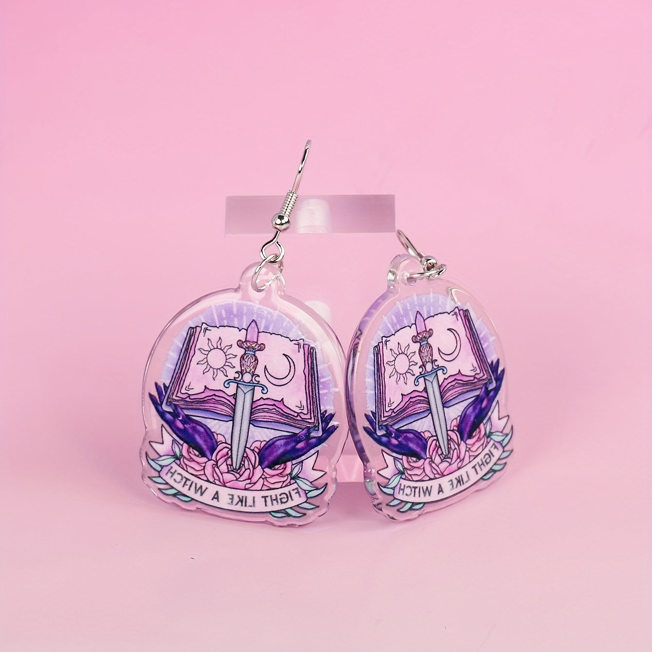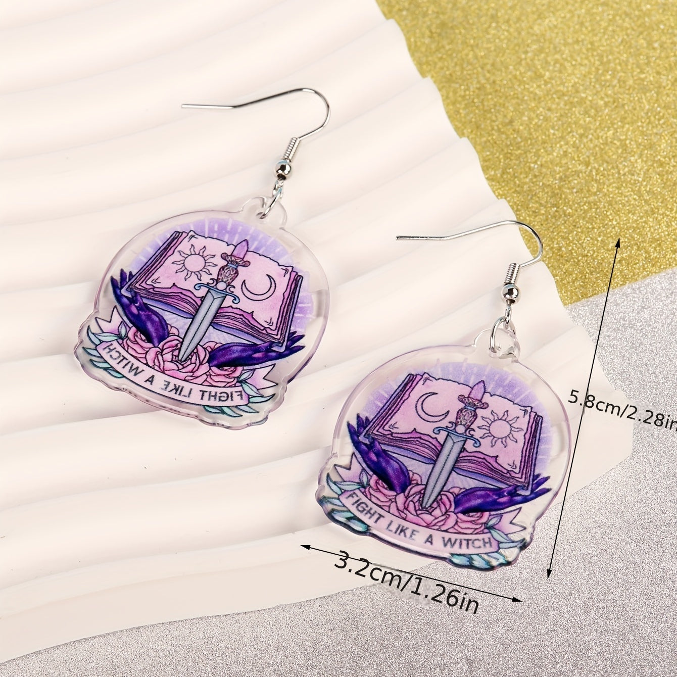 Retro goth style earrings featuring evil flower, sword and magic book designs. Perfect gift for women and girls.