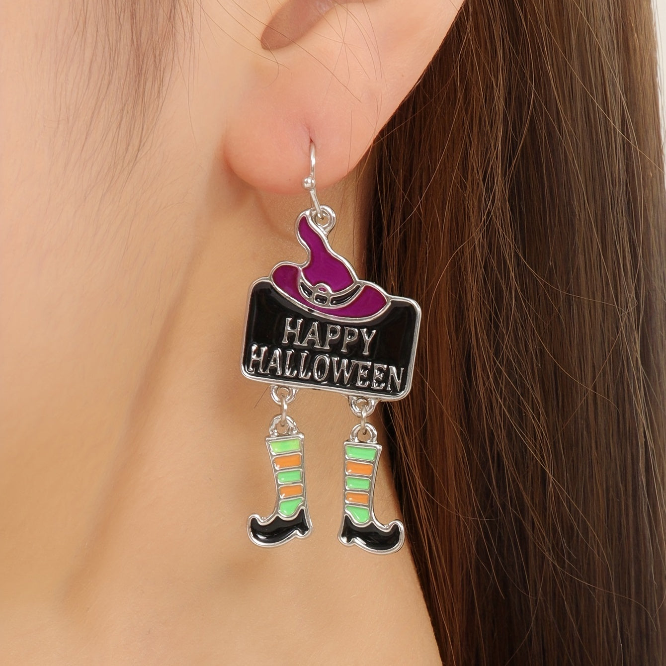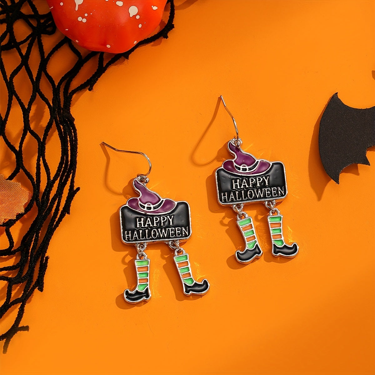 Embrace the vocation style with these creative female gift earrings. Made of zinc alloy, these witch hat and boots dangle earrings are perfect for Halloween.