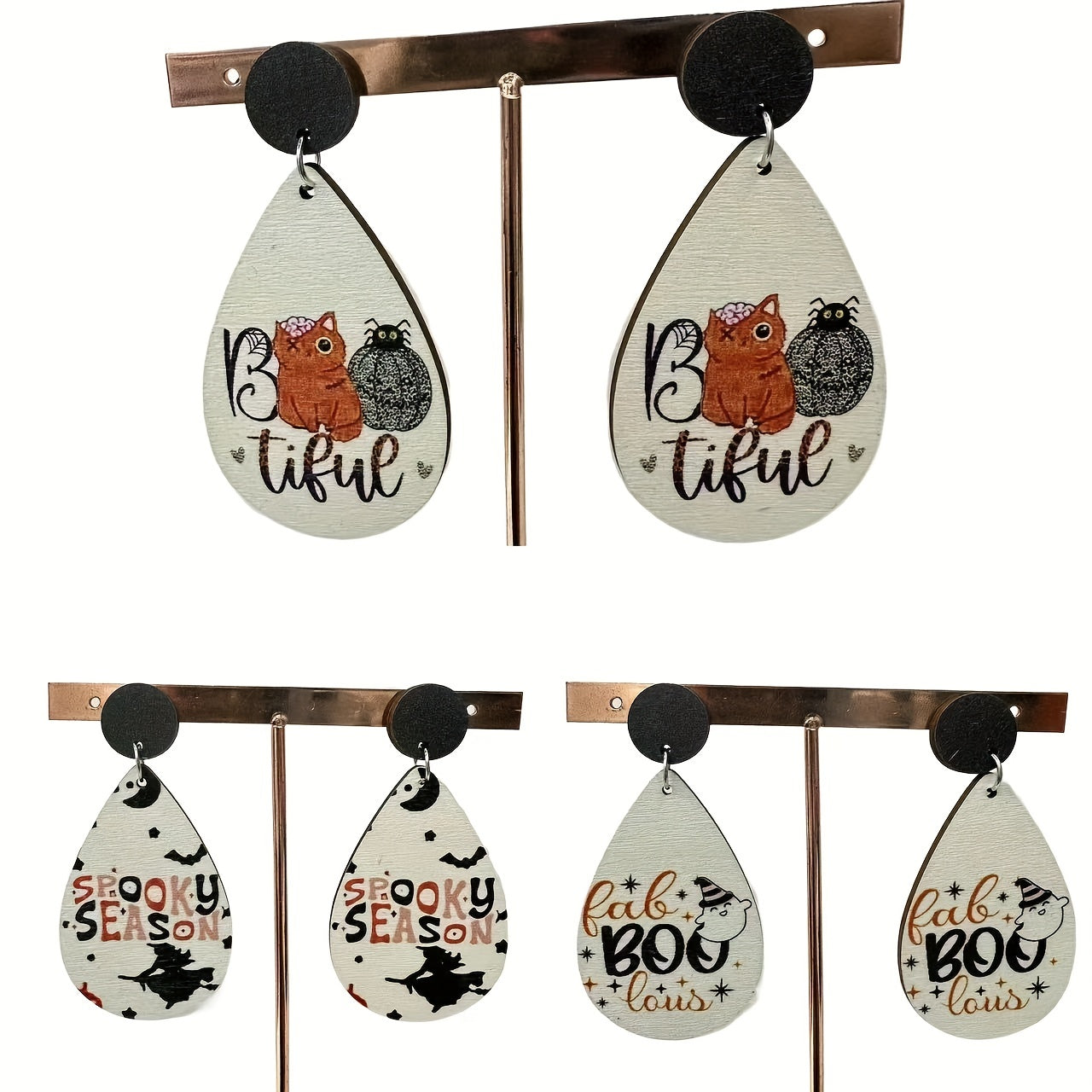 Add a spooky touch to your Halloween outfit with these ghost-themed teardrop dangle earrings. Perfect for parties and celebrations.