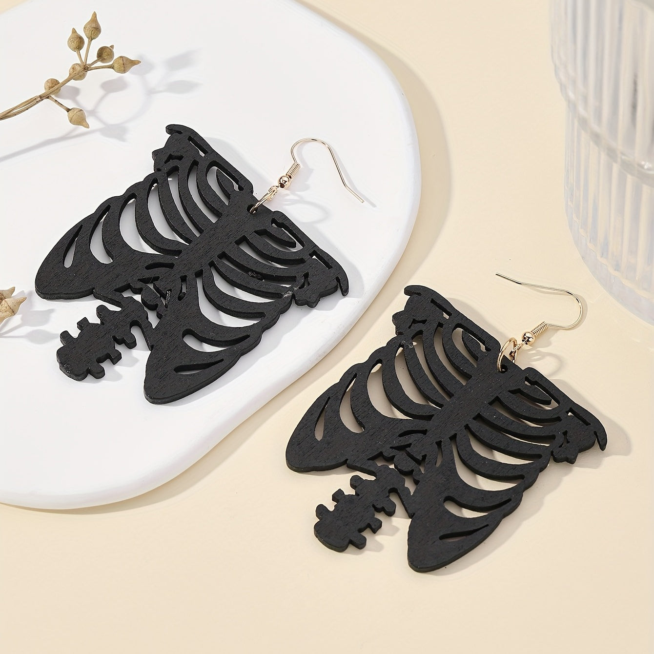 These wooden skeleton dangle earrings are perfect for Halloween parties. They have a punk style design that is creative and unique, making them a great gift for women and girls.