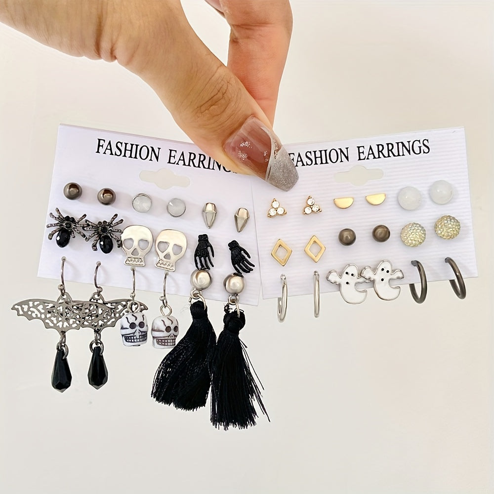 Get into the Halloween spirit with this adorable Skeleton Pumpkin Earrings Set. Made of high-quality alloy, these earrings feature a retro cartoon style perfect for adding a touch of spookiness to your outfit. Makes a great gift for any female jewelry lover.