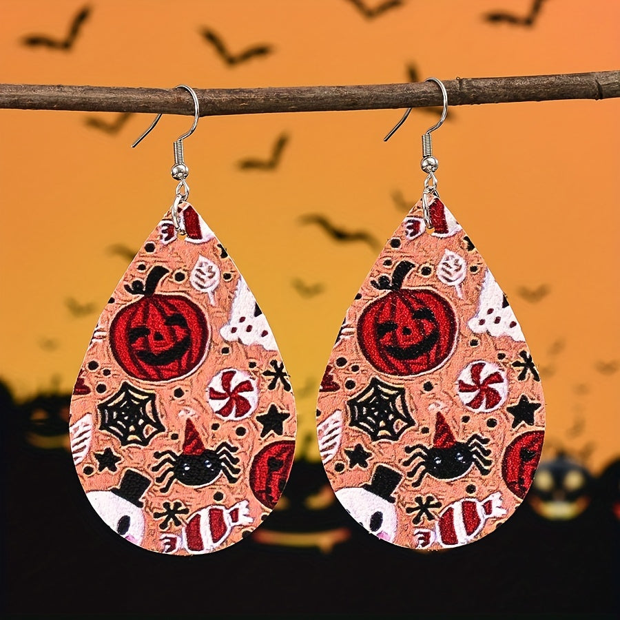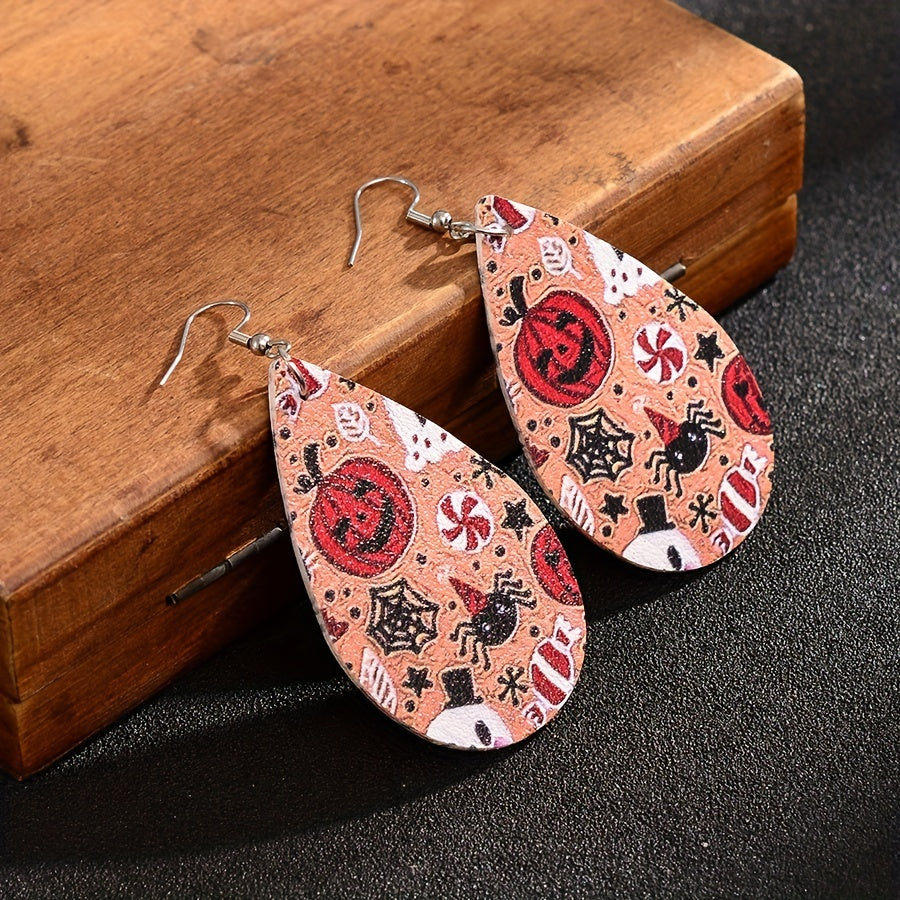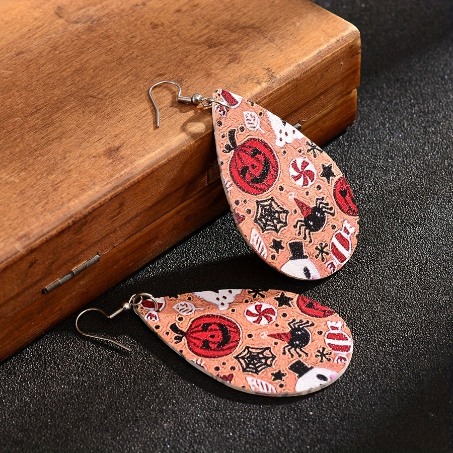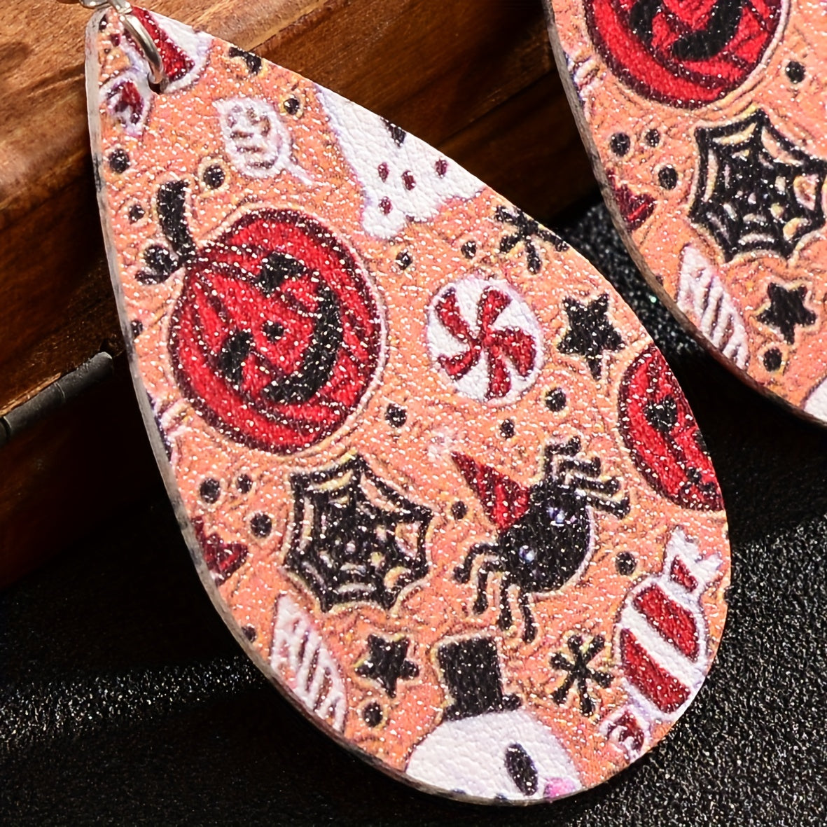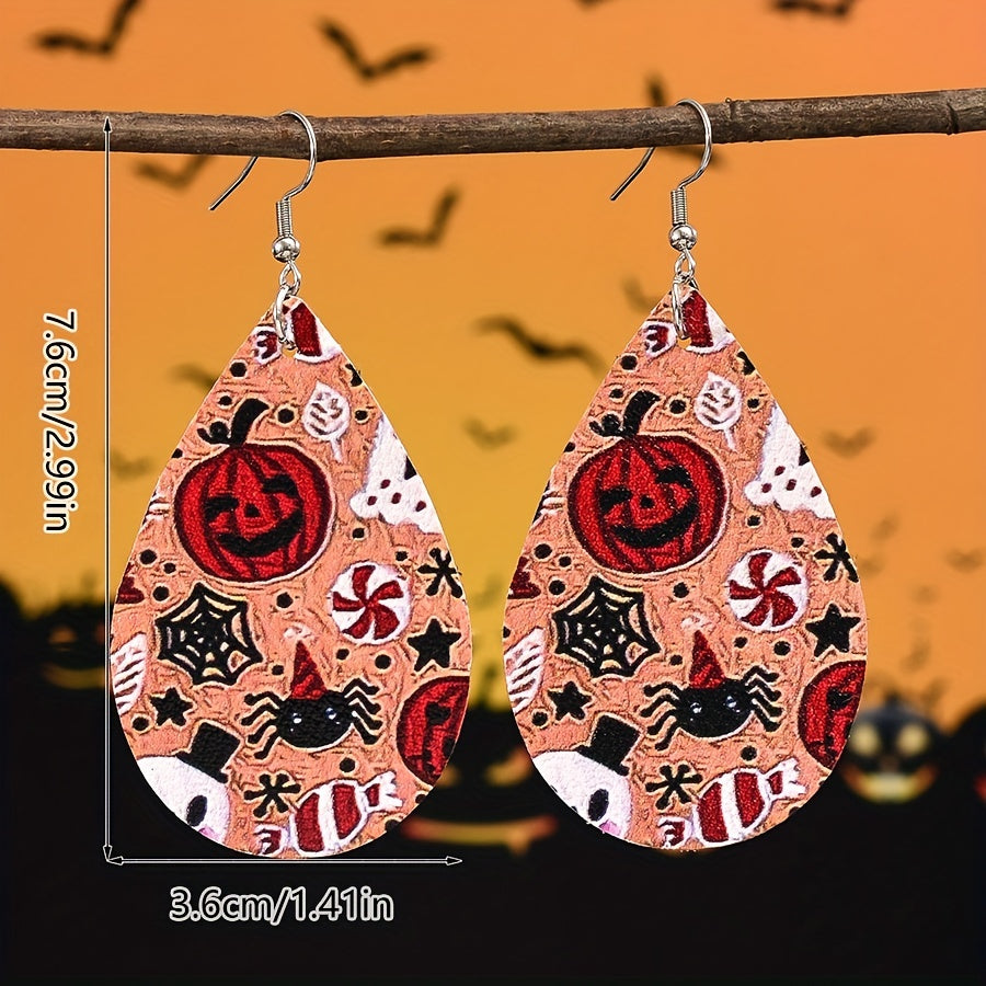 Add a spooky touch to your Halloween outfit with these spider web dangle earrings. The retro party style design features a ghost pattern and is made of PU leather, perfect for a female gift.