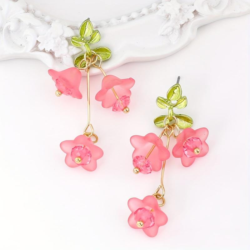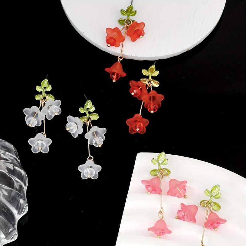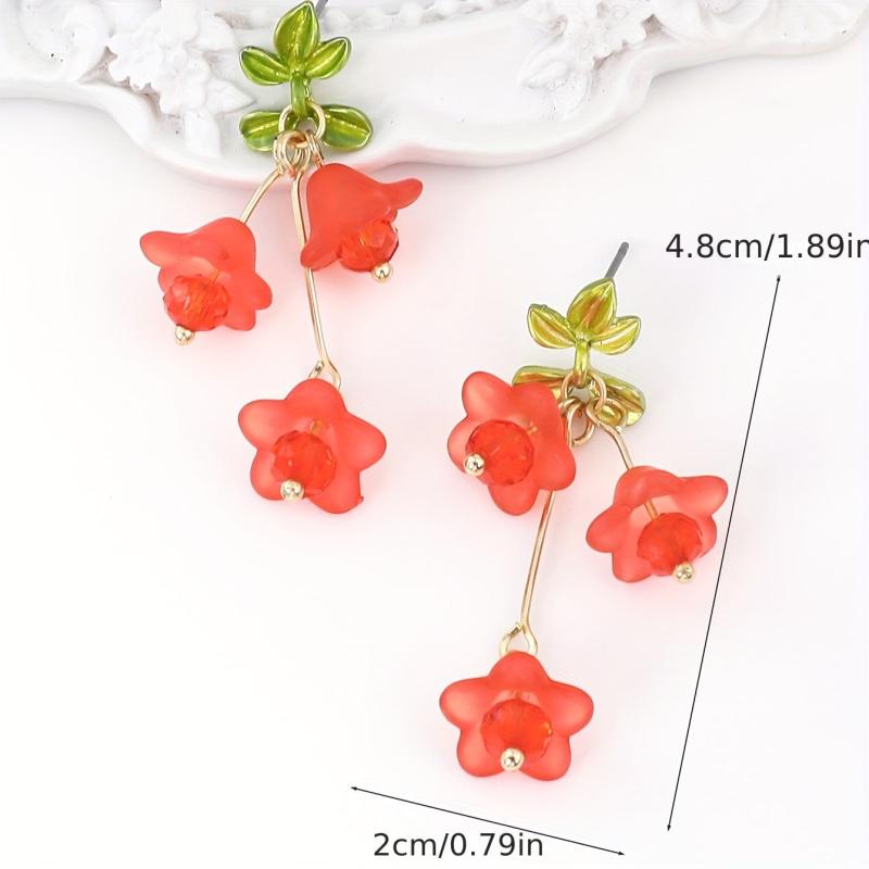 Vintage floral drop earrings made of alloy. Perfect for daily wear or parties. Features lily of the valley design. No plating for a natural look.