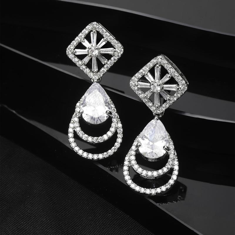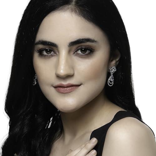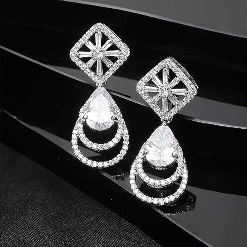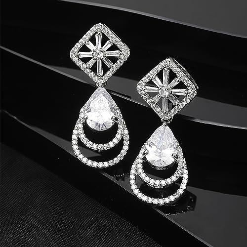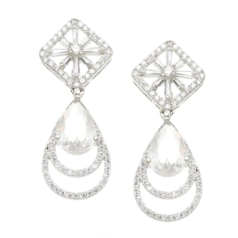 Elegant and stylish handcrafted earrings featuring teardrop design with American diamonds. Rhodium-plated for extra shine and durability.