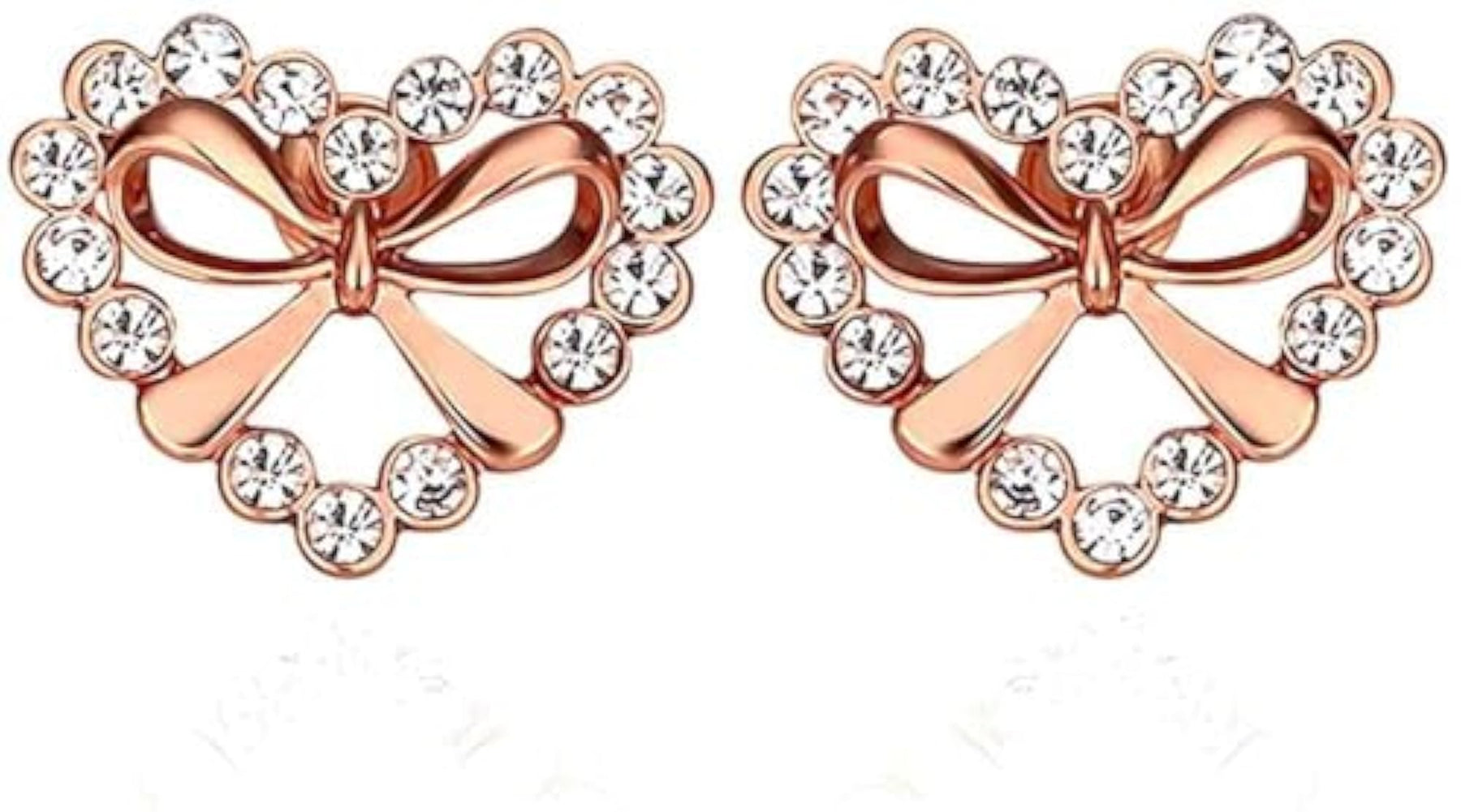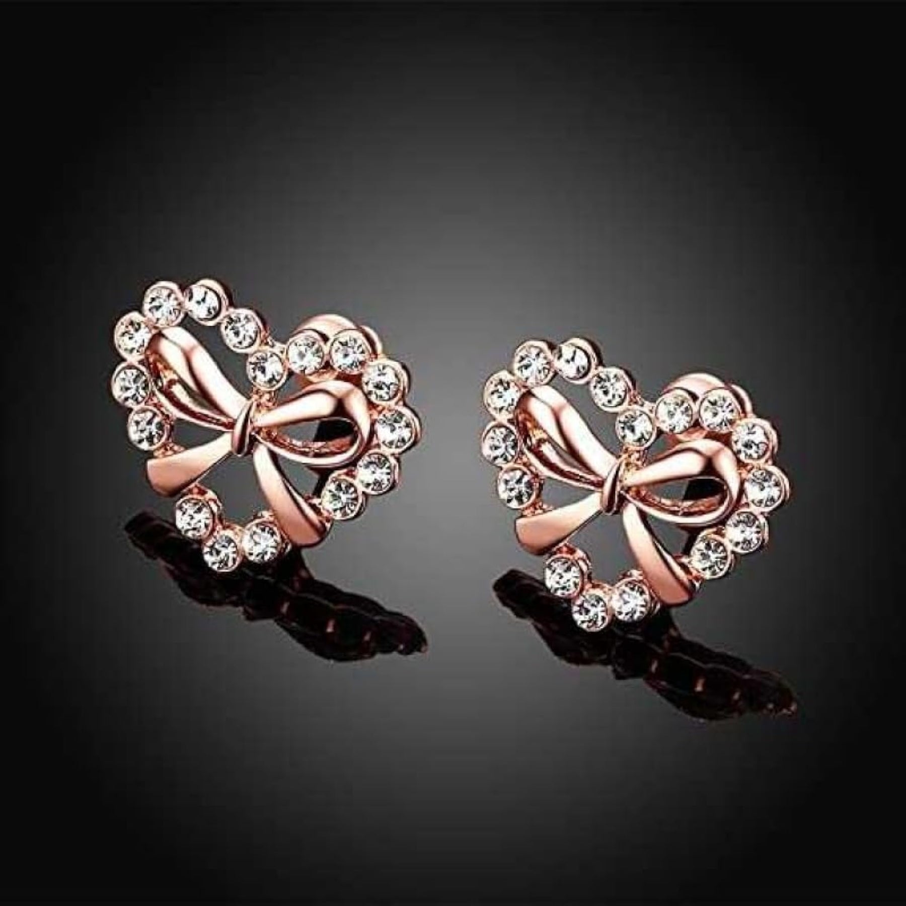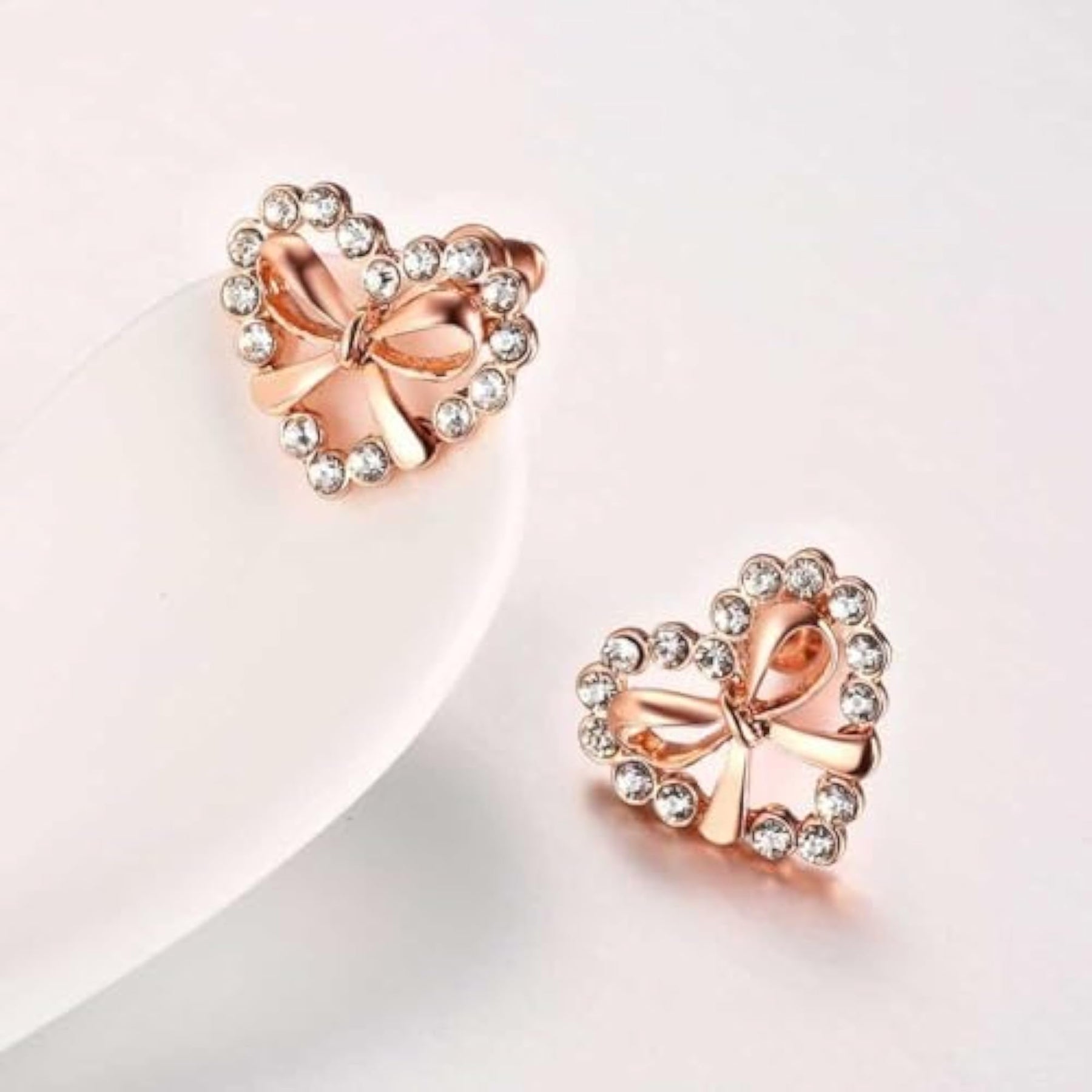 Add a touch of glamour and elegance to your look with these heart-shaped bow stud earrings. Perfect for any occasion, these earrings feature a sparkling design that will make you shine.