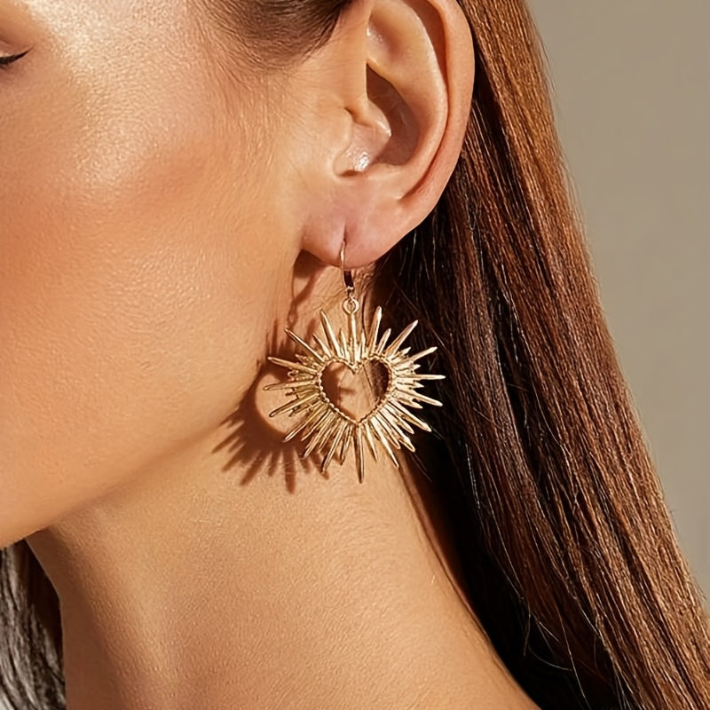 Add a touch of elegance to your look with these heart dangle earrings. Made of alloy with 18K gold plating, these earrings are perfect for vocation style. A great gift for a special female in your life.