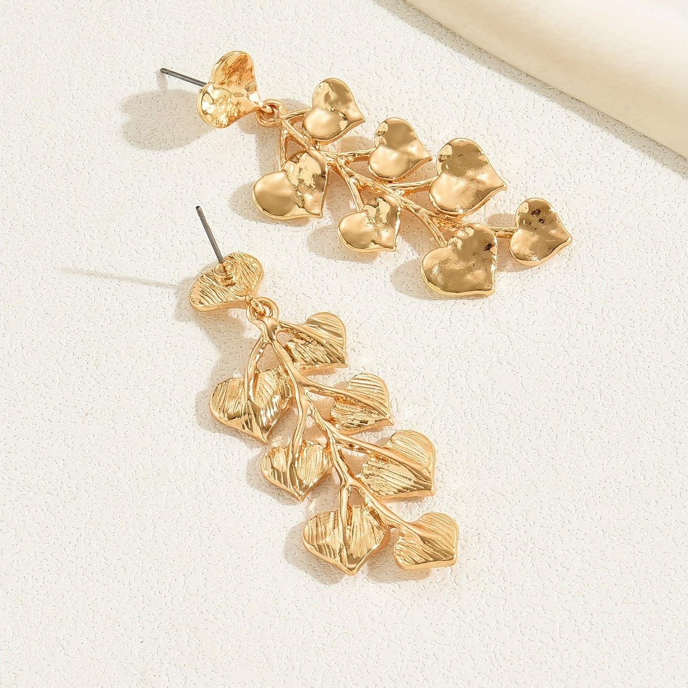 These elegant earrings feature a golden twig design with heart-shaped leaves, making them the perfect gift for any occasion.