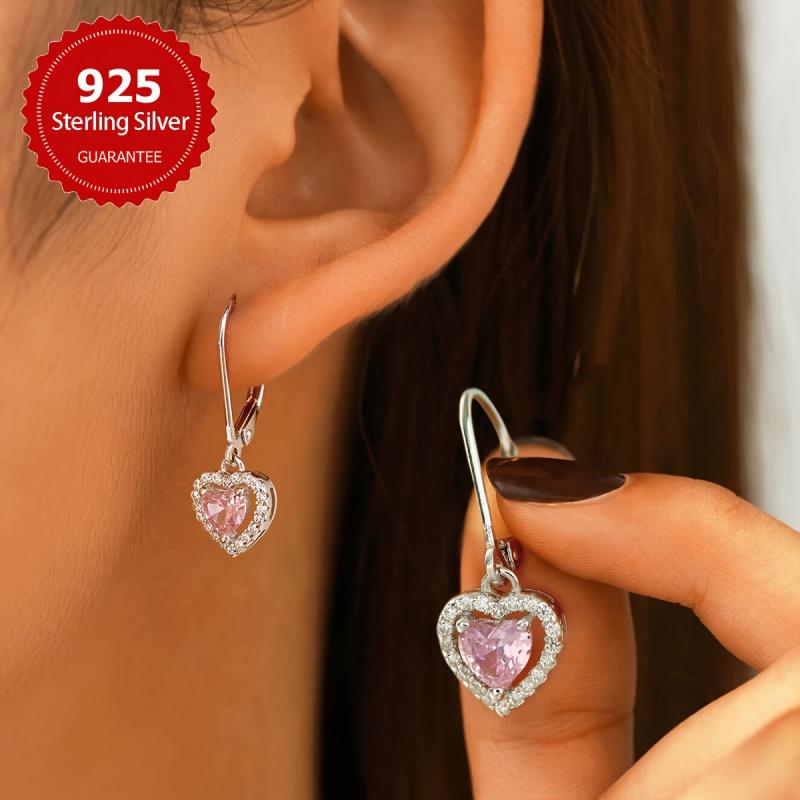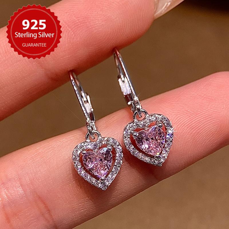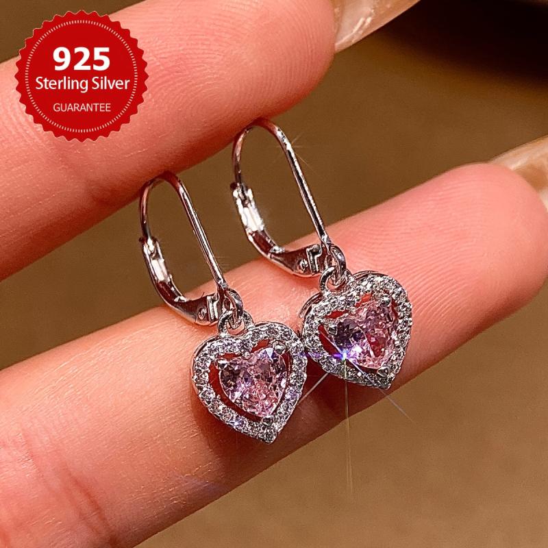 These elegant hollow heart pendant earrings are made of pure s925 silver and feature sparkling zirconia stones. They weigh approximately 2.6 grams, making them lightweight and comfortable to wear.