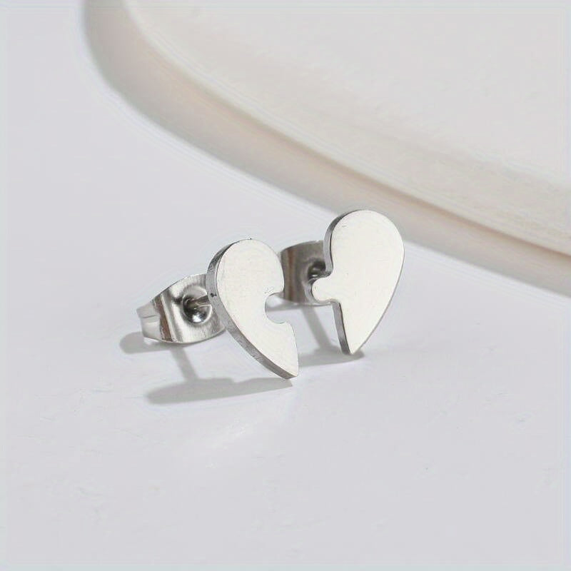 These lovely heart shape earrings are perfect for men. They feature an asymmetrical design with a puzzle stud style, making them small and sweet.