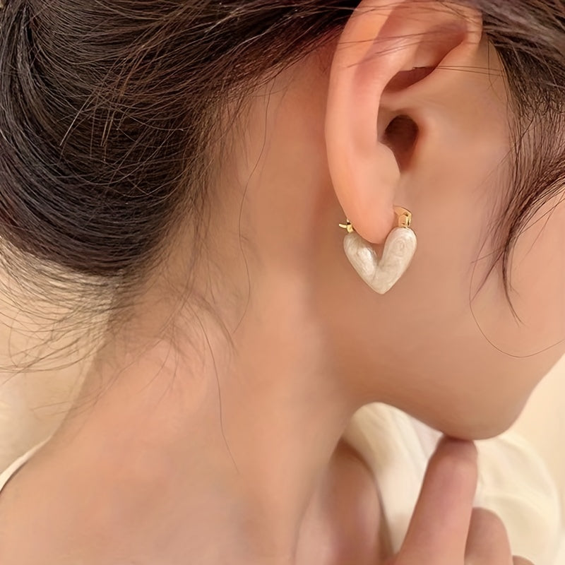 Get these stylish heart-shaped synthetic gem hoop earrings made of 14K plated alloy. Perfect as a gift or to add some sparkle to your outfit.