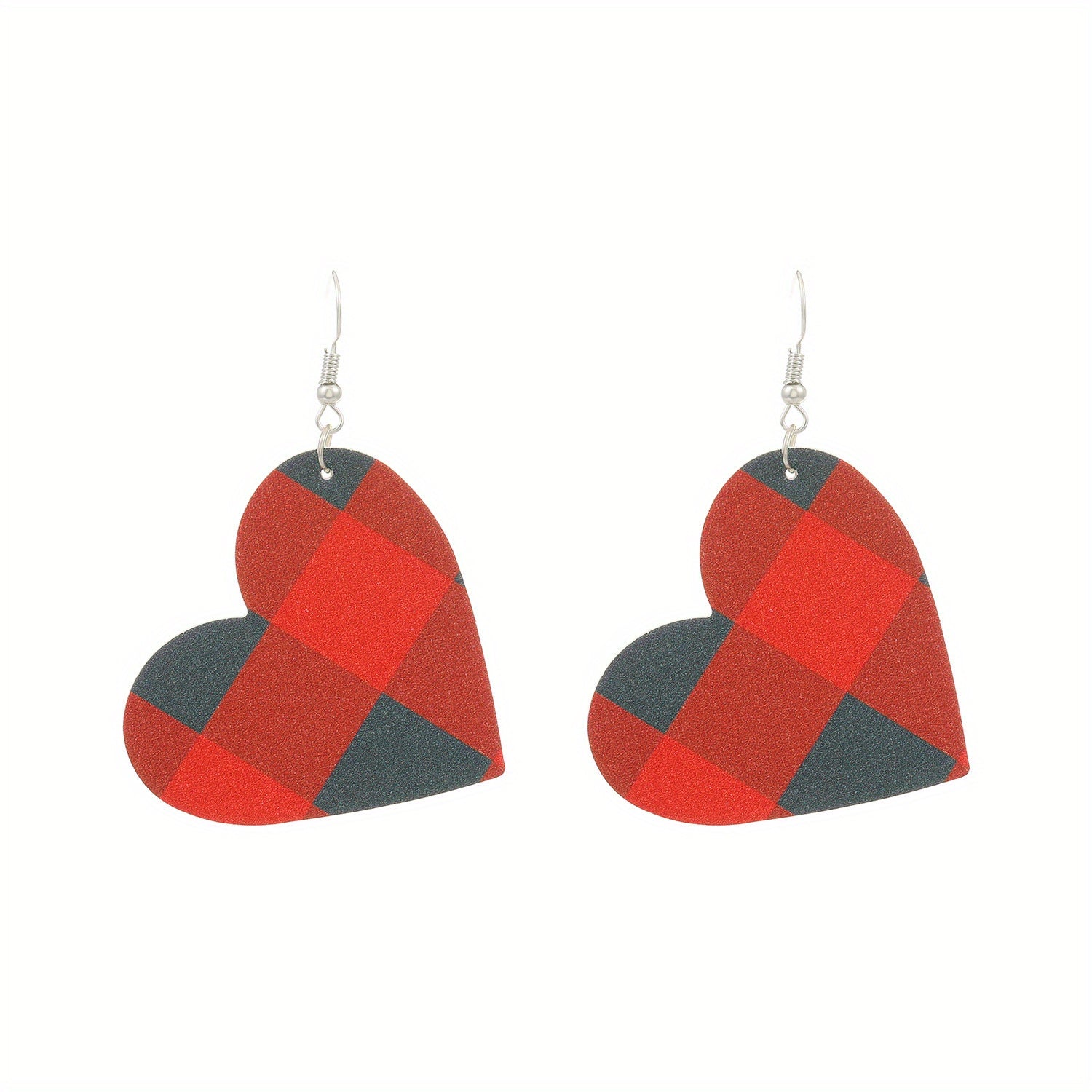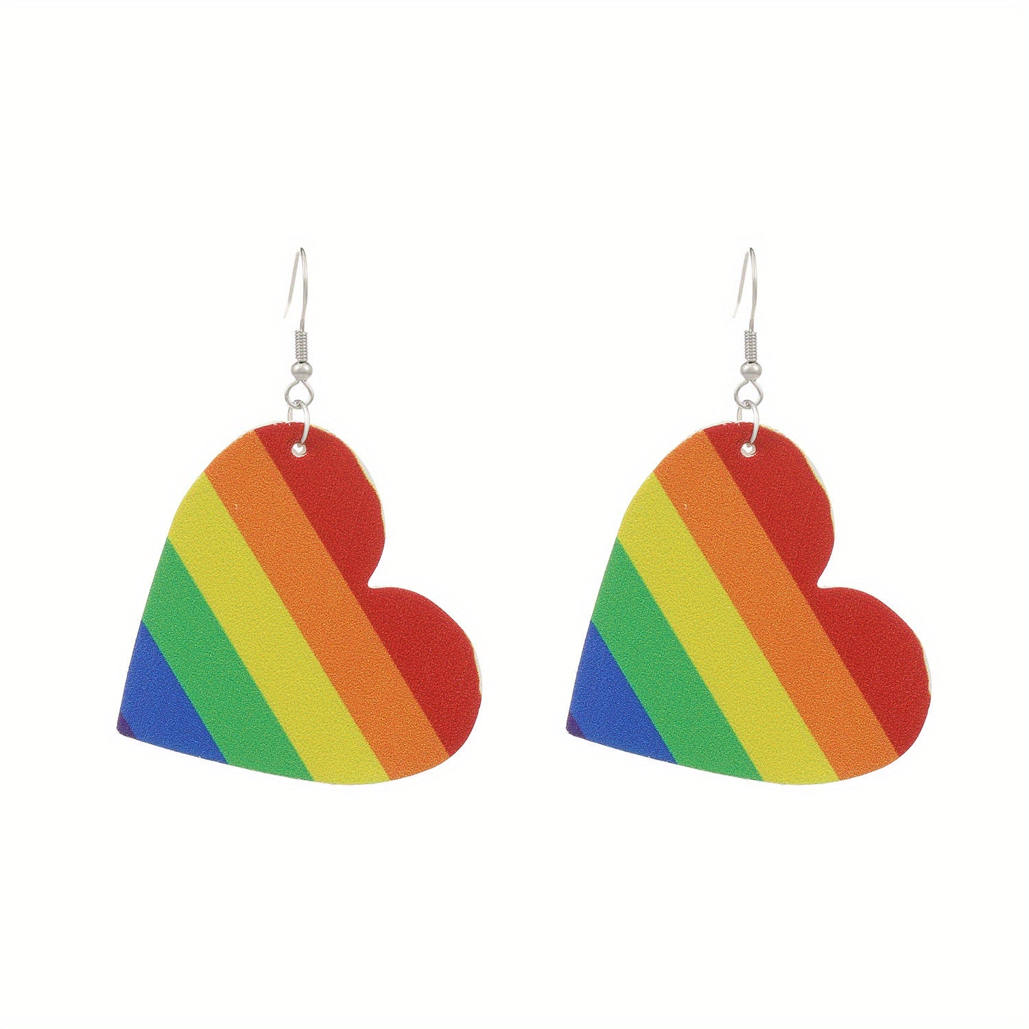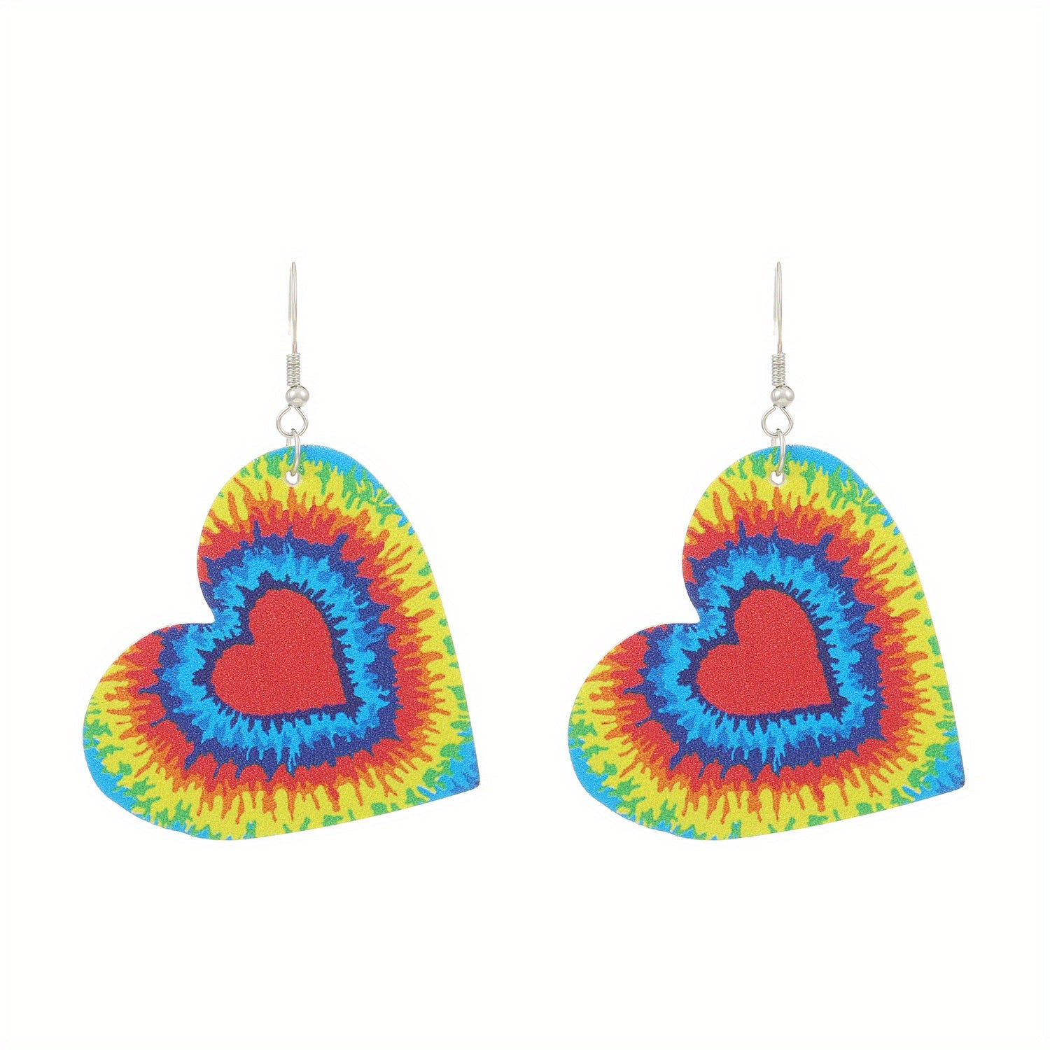 Heart Shape Rainbow Leopard Plaid Dangle Earrings Minimalist Style