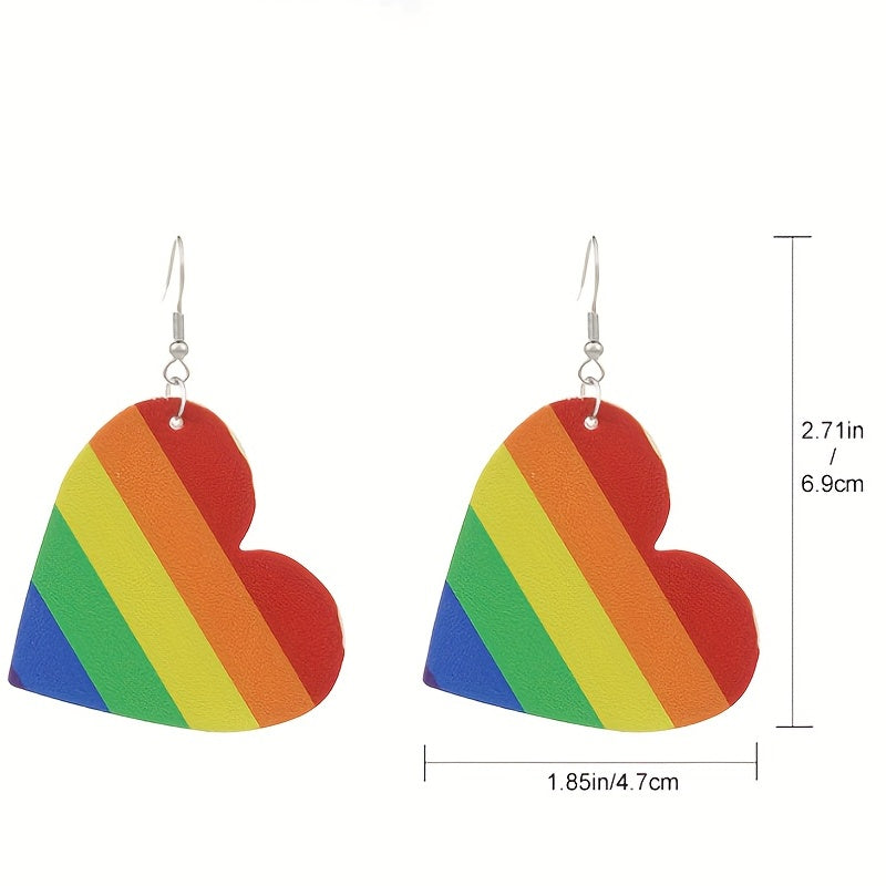 These dangle earrings feature a heart shape design with a rainbow leopard plaid pattern, made from PU leather. A perfect minimalist style jewelry gift for females.