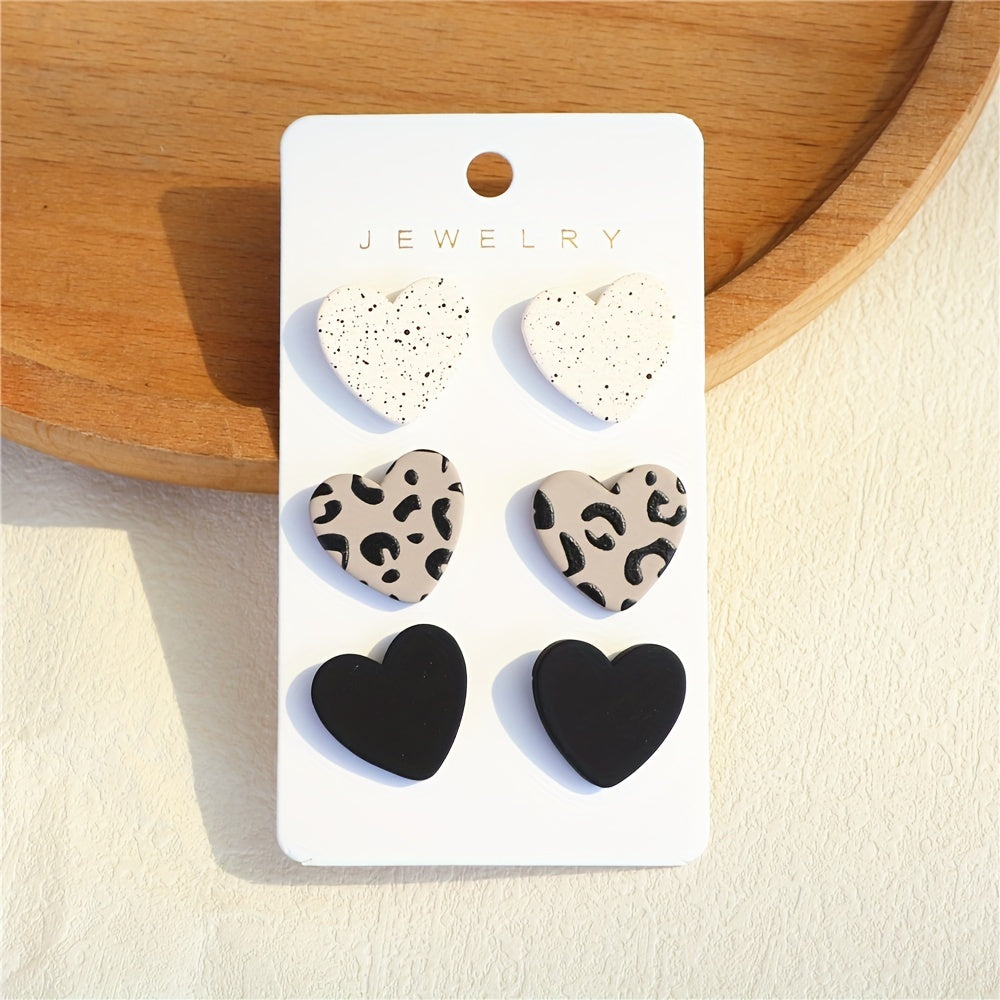 This set includes 3 pairs of heart shape stud earrings made of acrylic material. Perfect for daily casual wear or as a gift for women and girls.