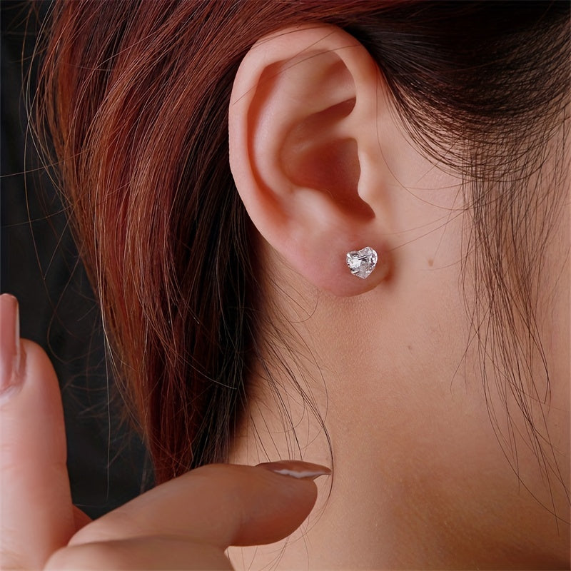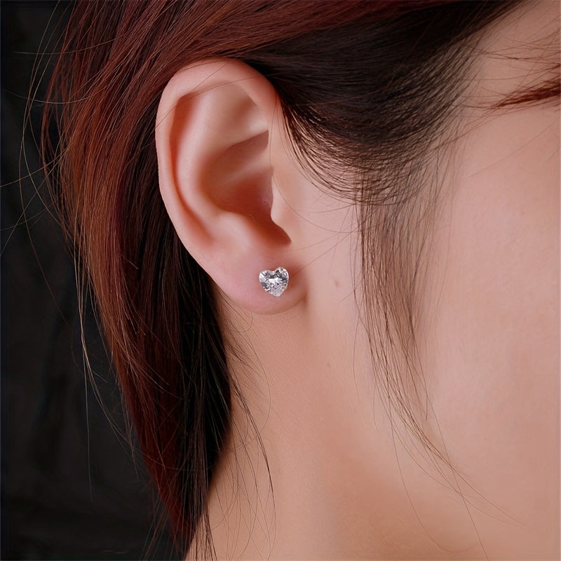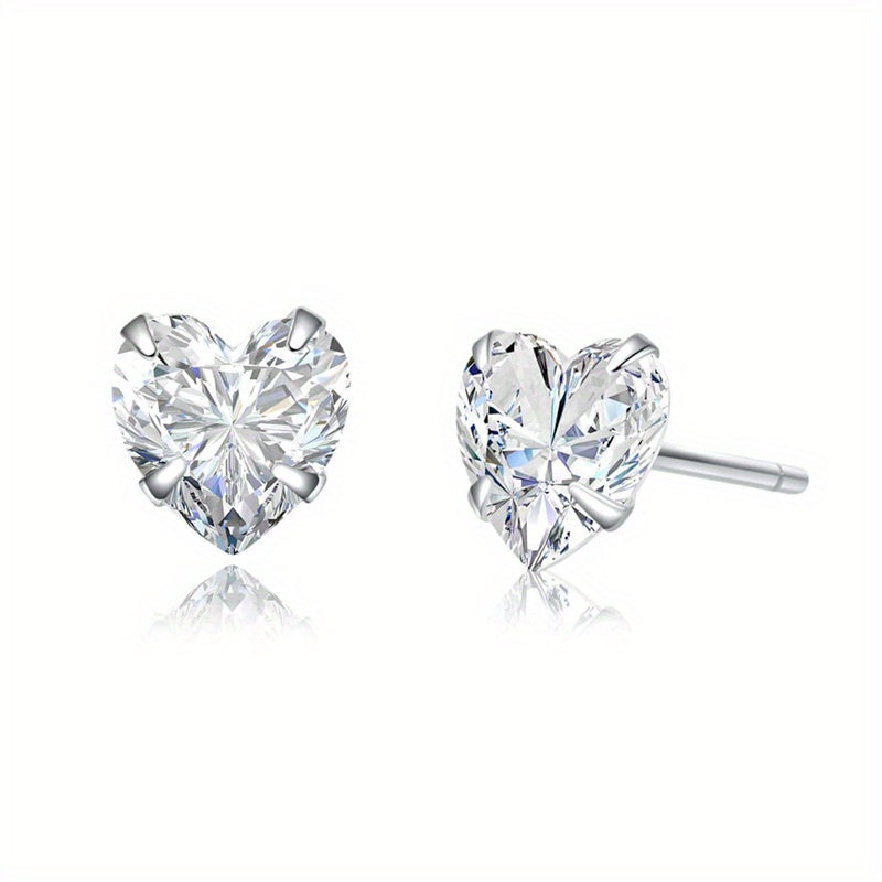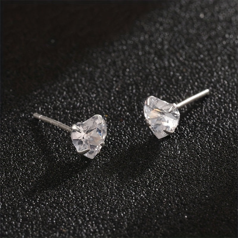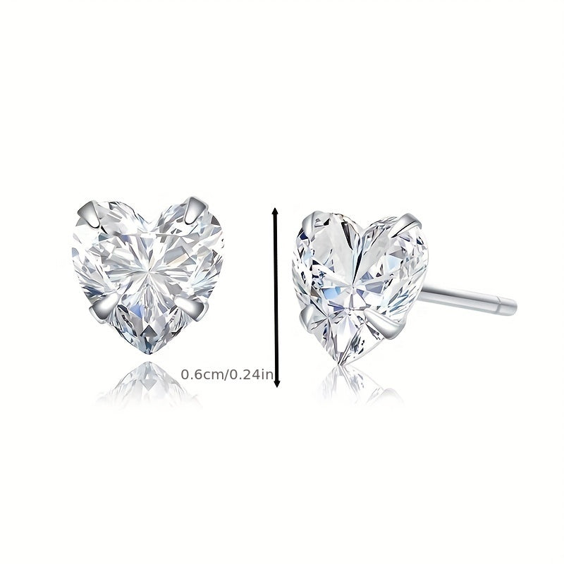 Heart Shape Zircon Stud Earrings Silver Plated Jewelry