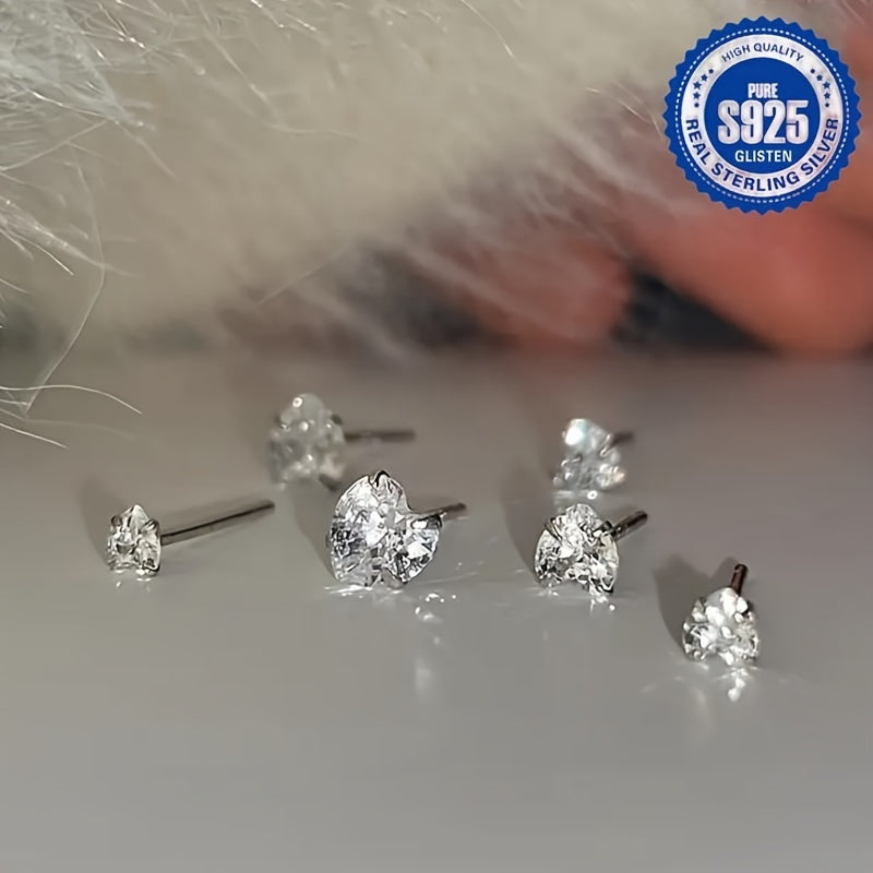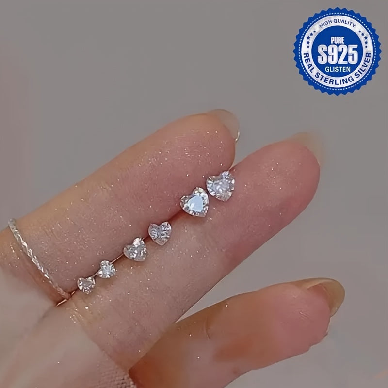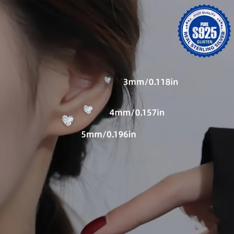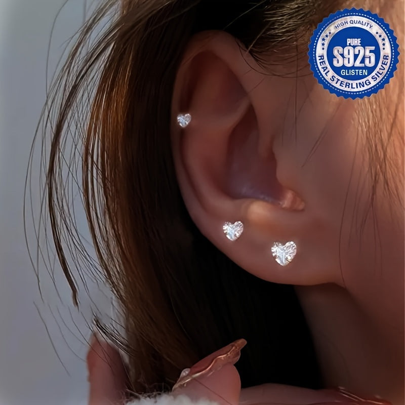 These heart-shaped stud earrings are crafted from 925 silver and feature zirconia inlays. Perfect for daily wear, they add a touch of elegance to any outfit.