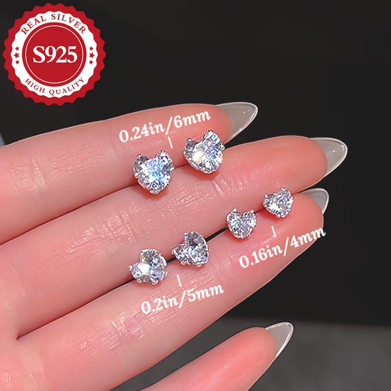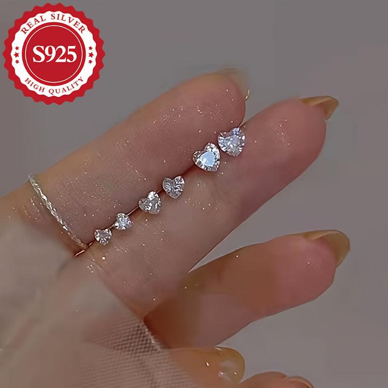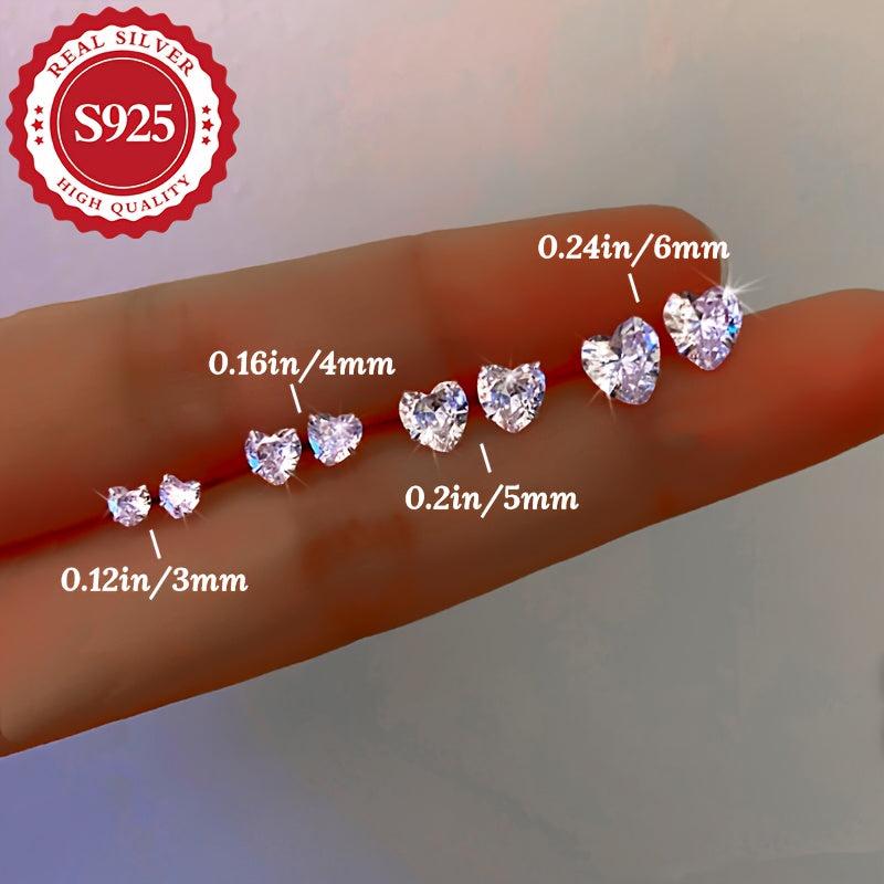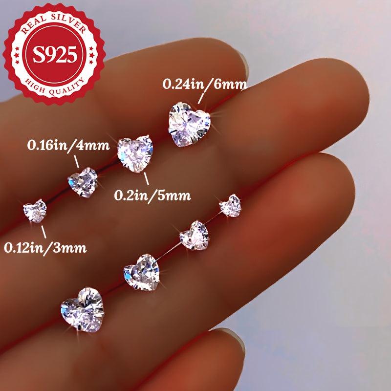 These heart shaped sterling silver stud earrings are perfect for sensitive skin. Made with hypoallergenic zirconia, they make an ideal gift for any occasion.