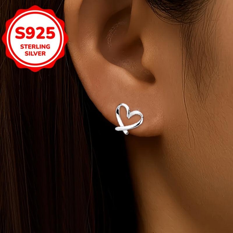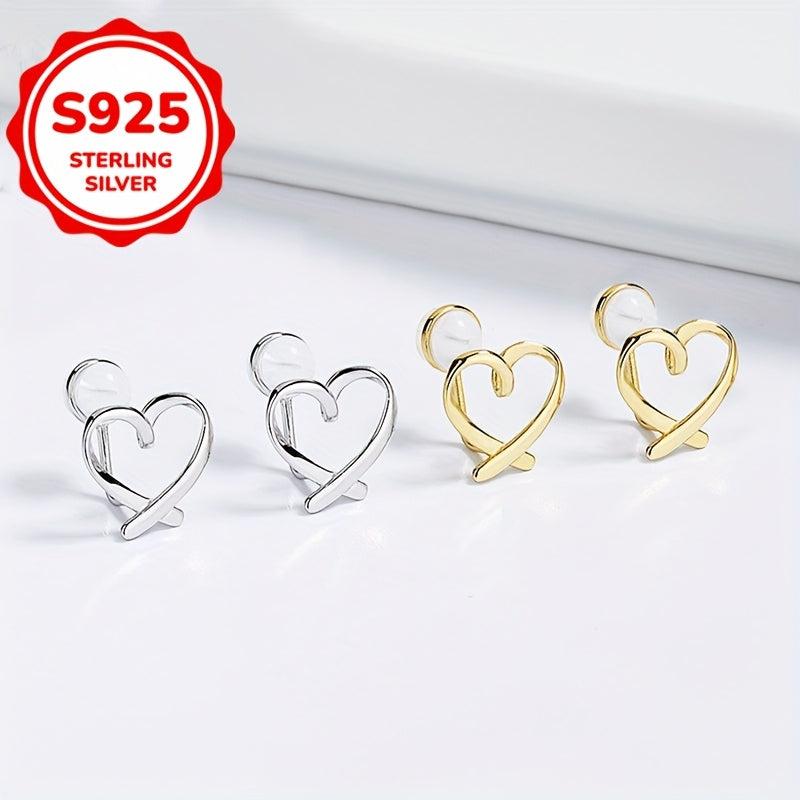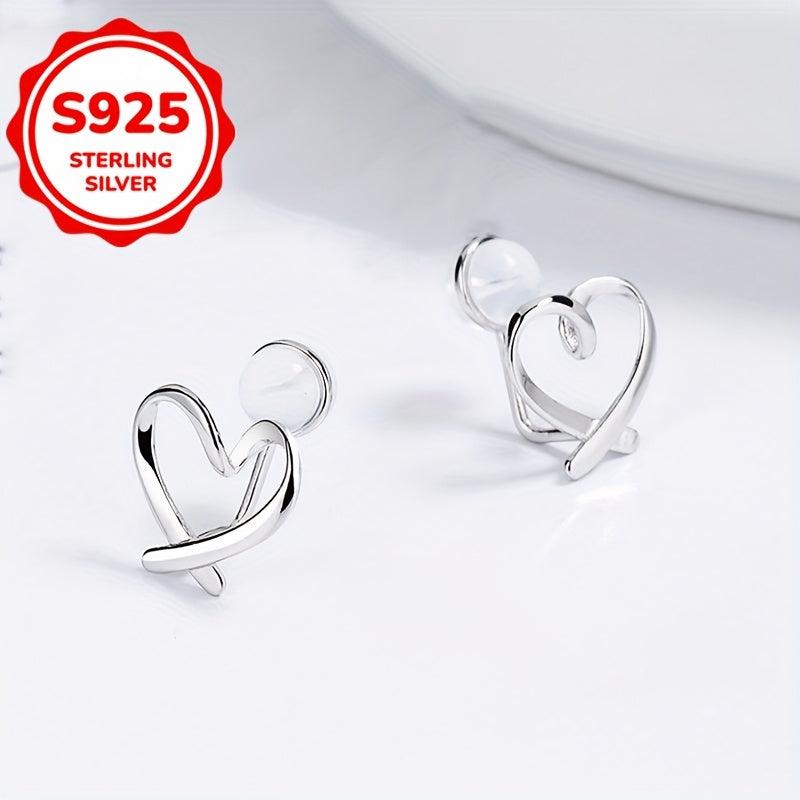 Heart-Shaped Clip-On Earrings, S925 Silver, 1 Pair