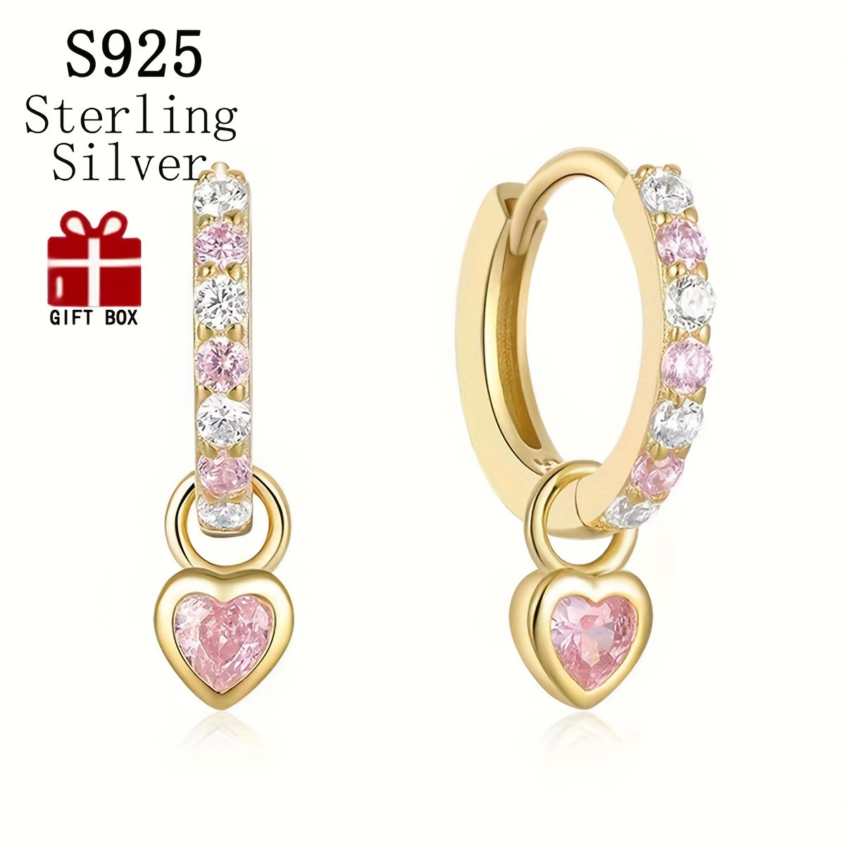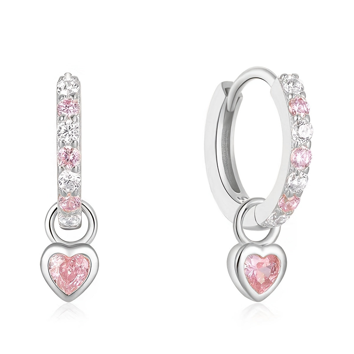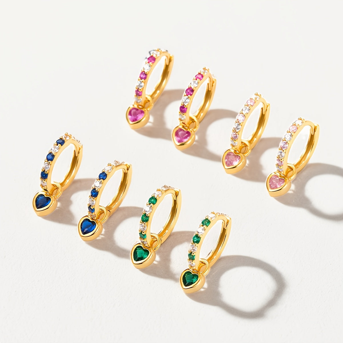 Heart Shaped Colorful Zirconia Earrings - Sterling Silver Jewelry Gift