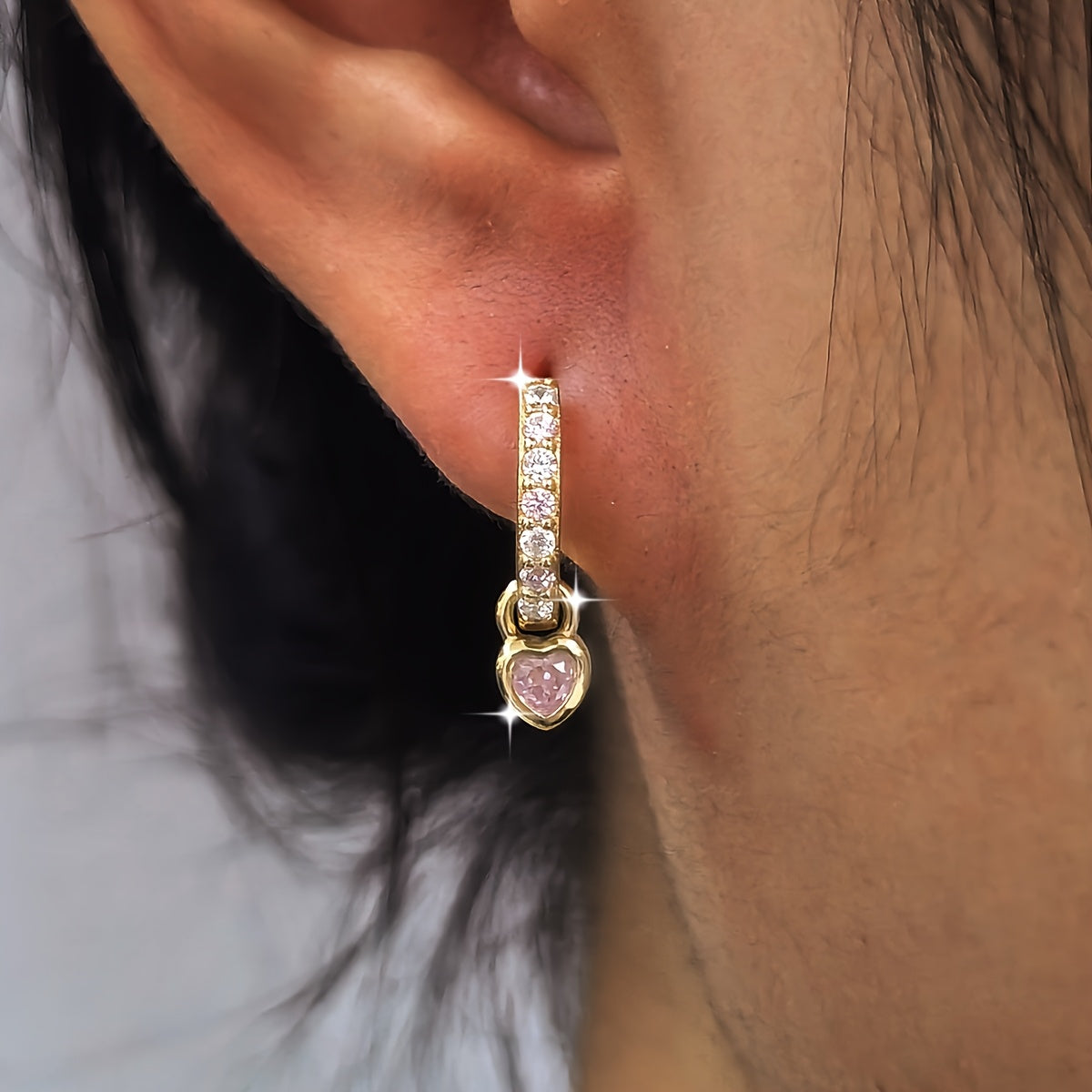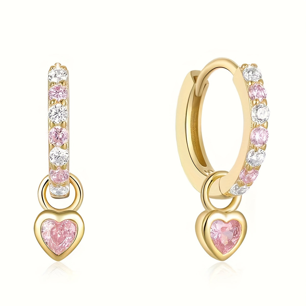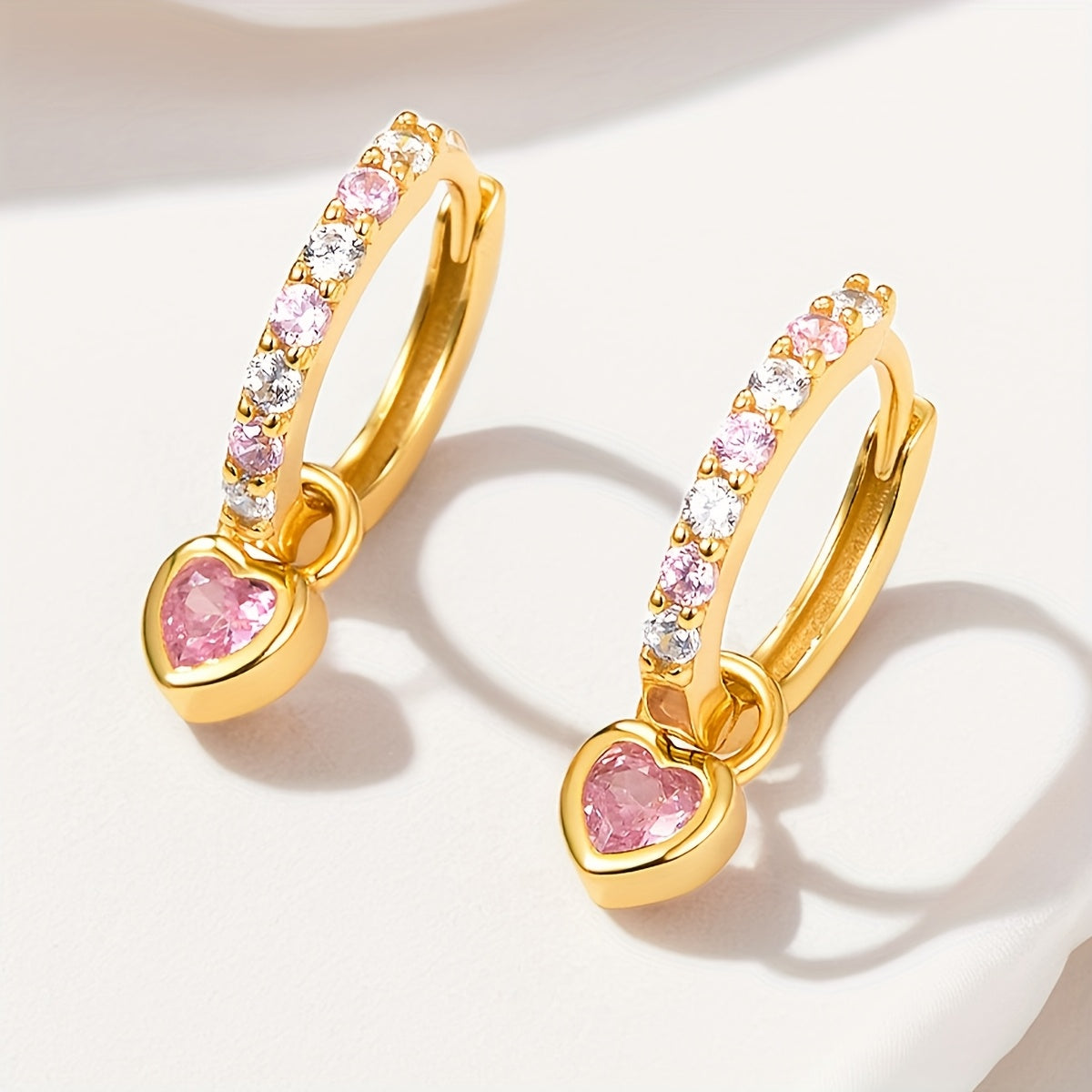 Surprise her with these romantic heart-shaped earrings featuring colorful synthetic zirconia stones. Perfect for Valentine's Day, birthdays, or any special occasion.