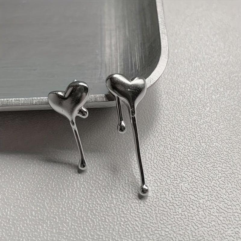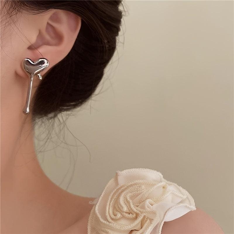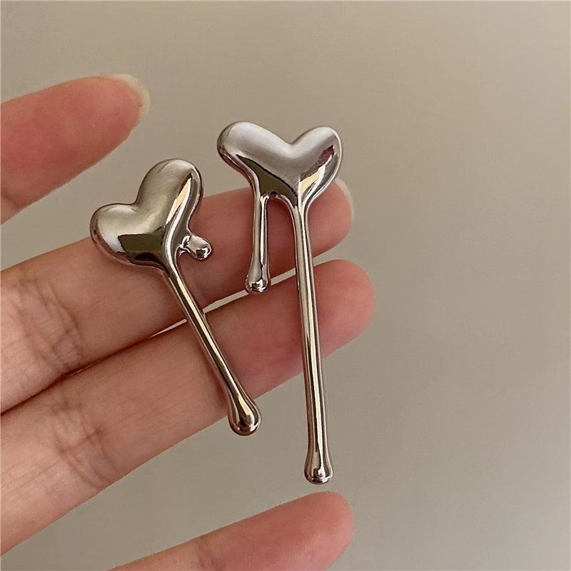 Add a touch of elegance to your look with these unique asymmetrical heart-shaped earrings featuring melting water droplets. Perfect for ladies to wear on dates or parties.