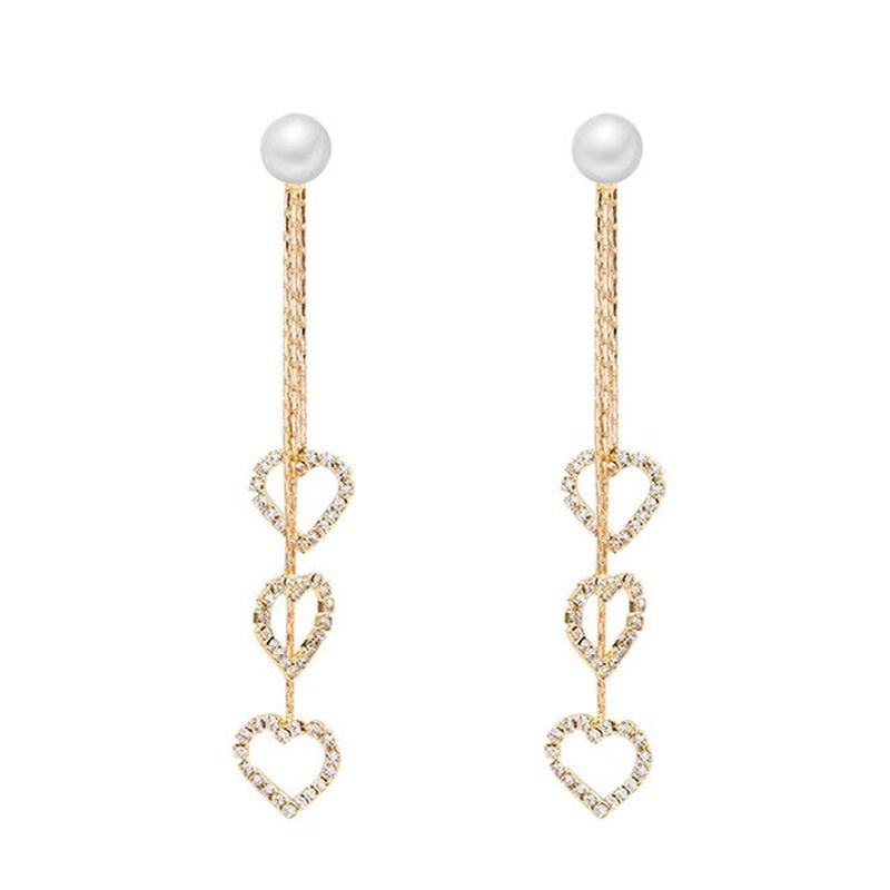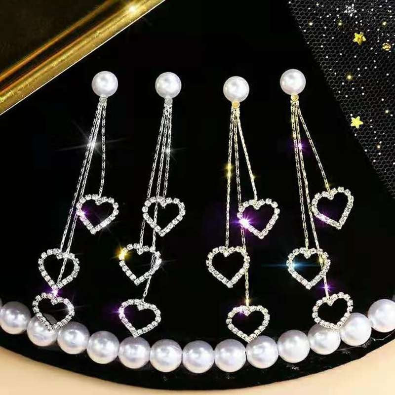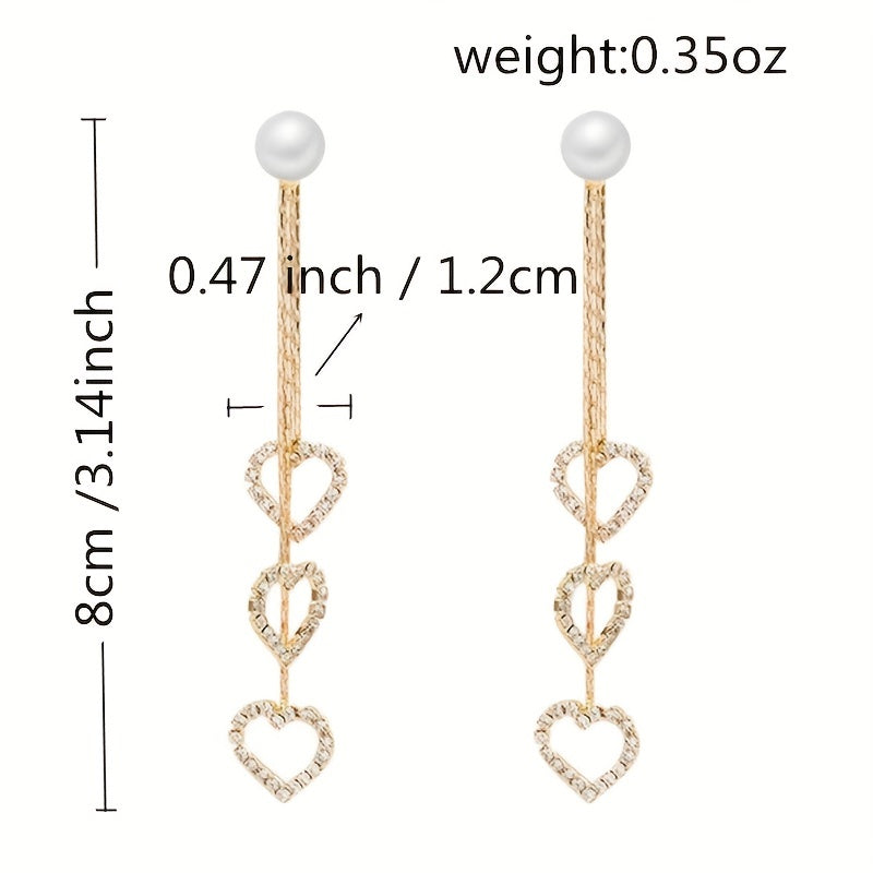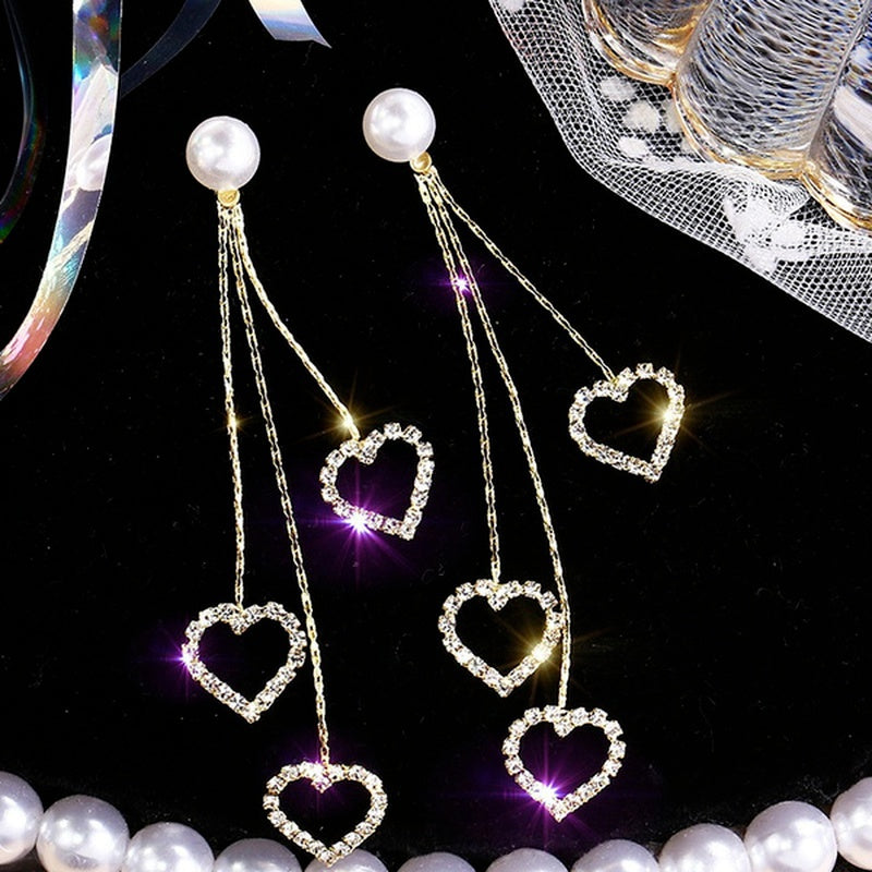 Chic and elegant heart-shaped earrings with retro faux pearls and long tassels. Perfect for parties or as an anniversary gift.