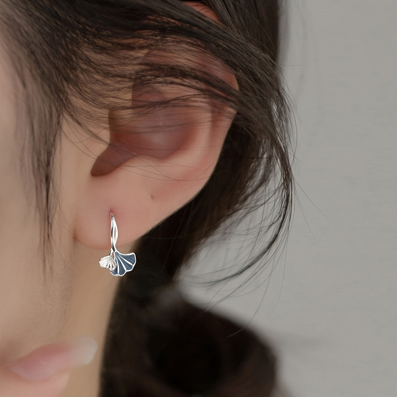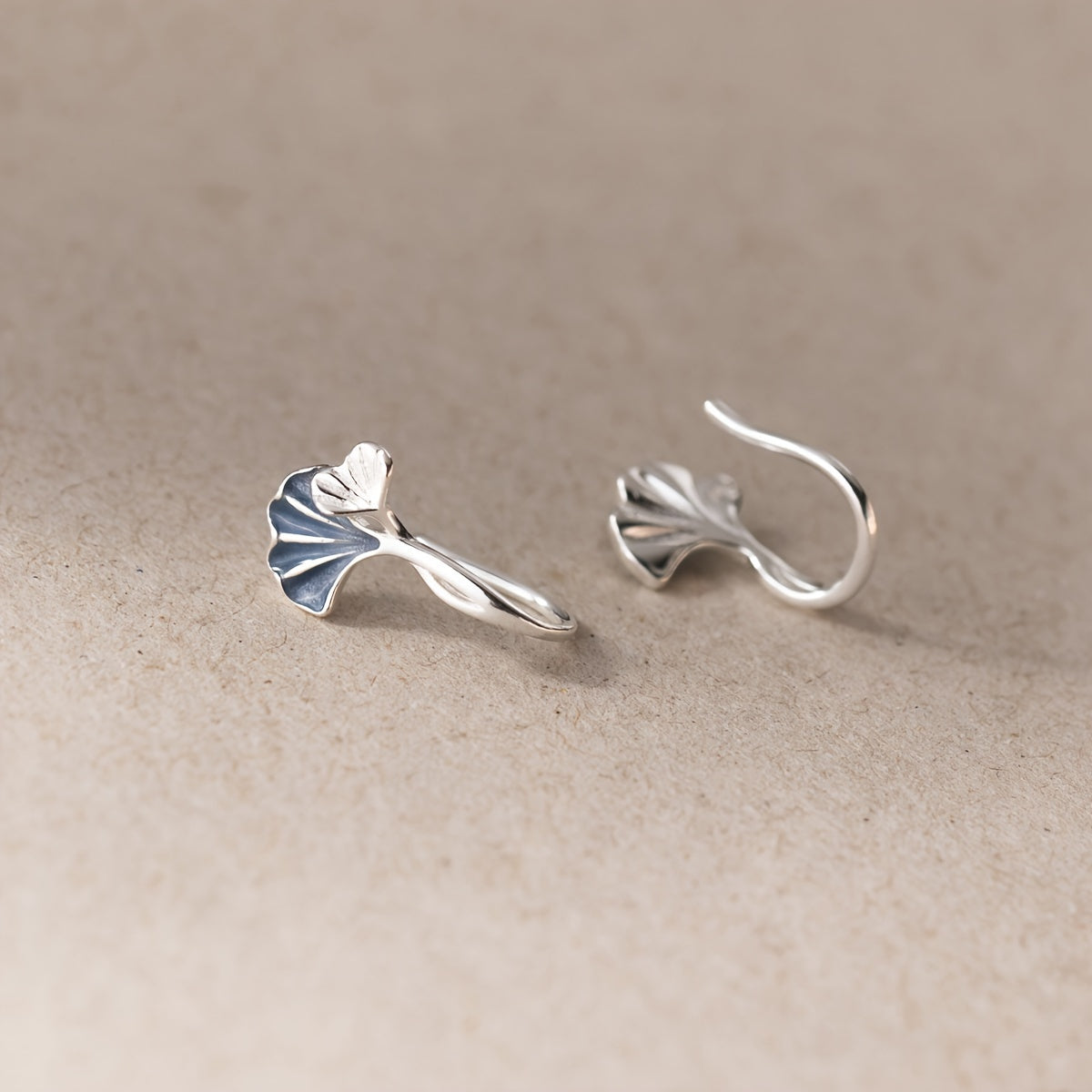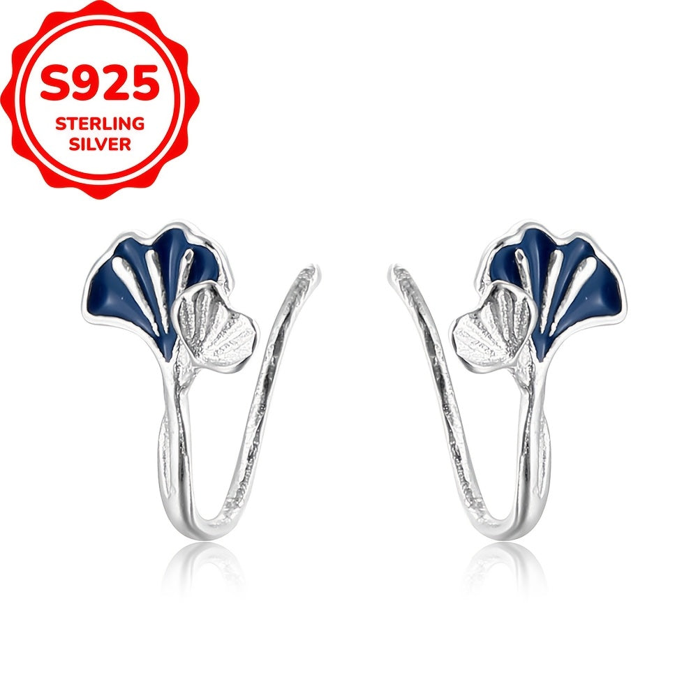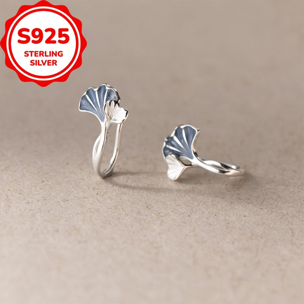 These heart shaped stud earrings are made of 925 sterling silver and feature a ginkgo biloba design with synthetic zirconia. They are hypoallergenic and perfect for everyday wear.
