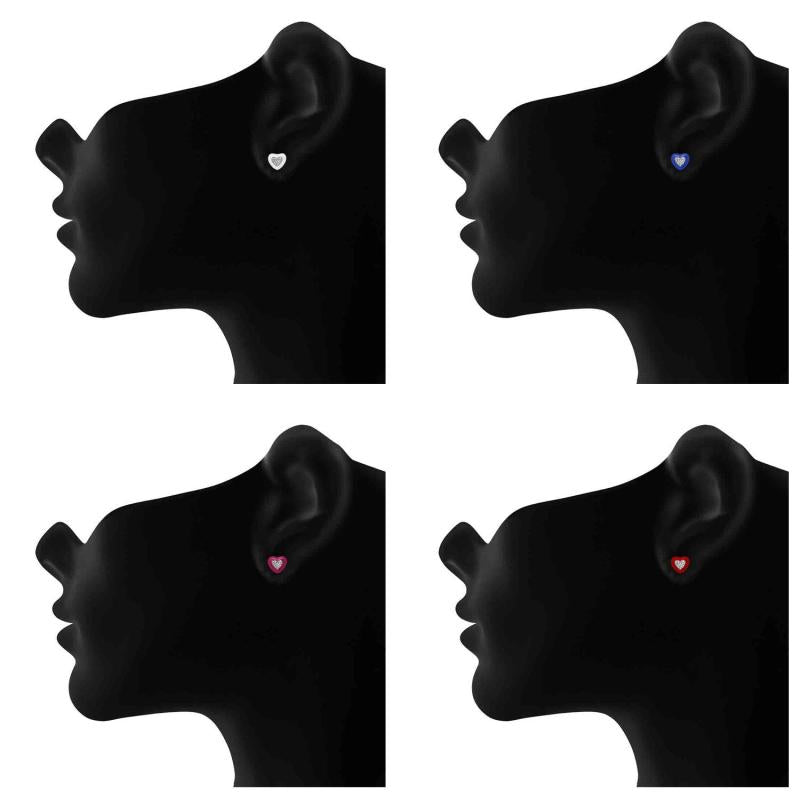 Adorn your ears with these romantic heart stud earrings featuring sparkling crystals. The rhodium plating adds a touch of elegance to any outfit.