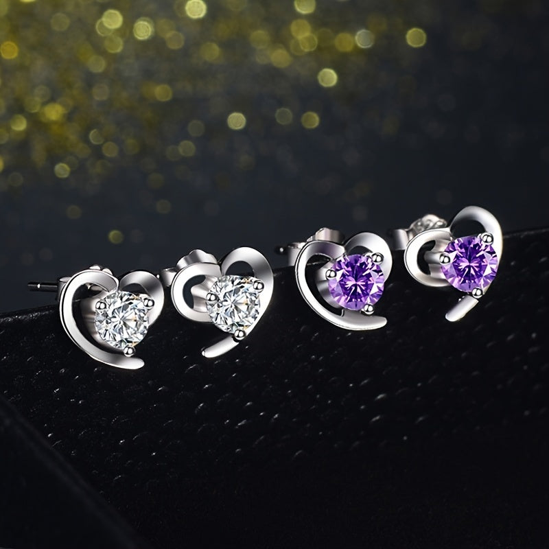 These asymmetric heart earrings feature inlaid zircon stones for a touch of elegance. Perfect gift for girls who love classic jewelry.