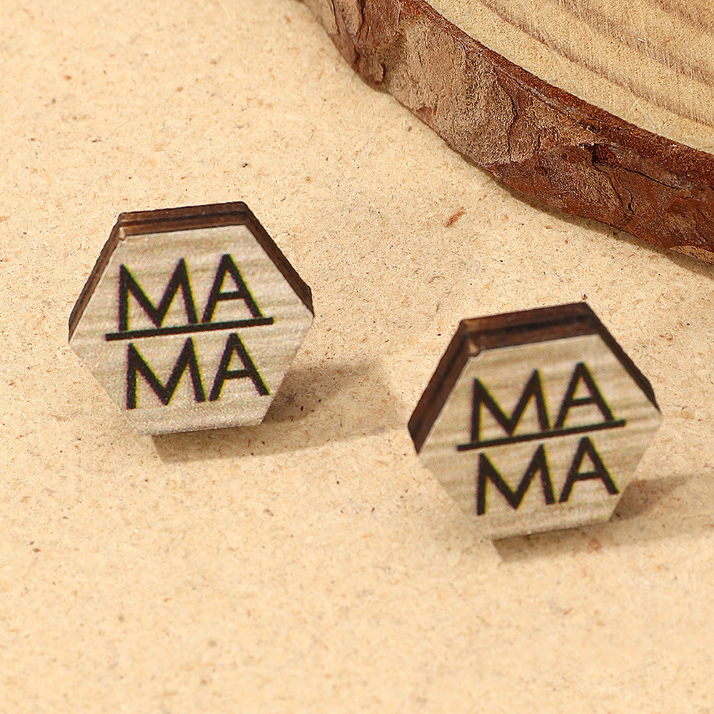 These hexagon shape MAMA wooden stud earrings are a perfect minimalist style jewelry gift for mothers. Show your love with these unique earrings!