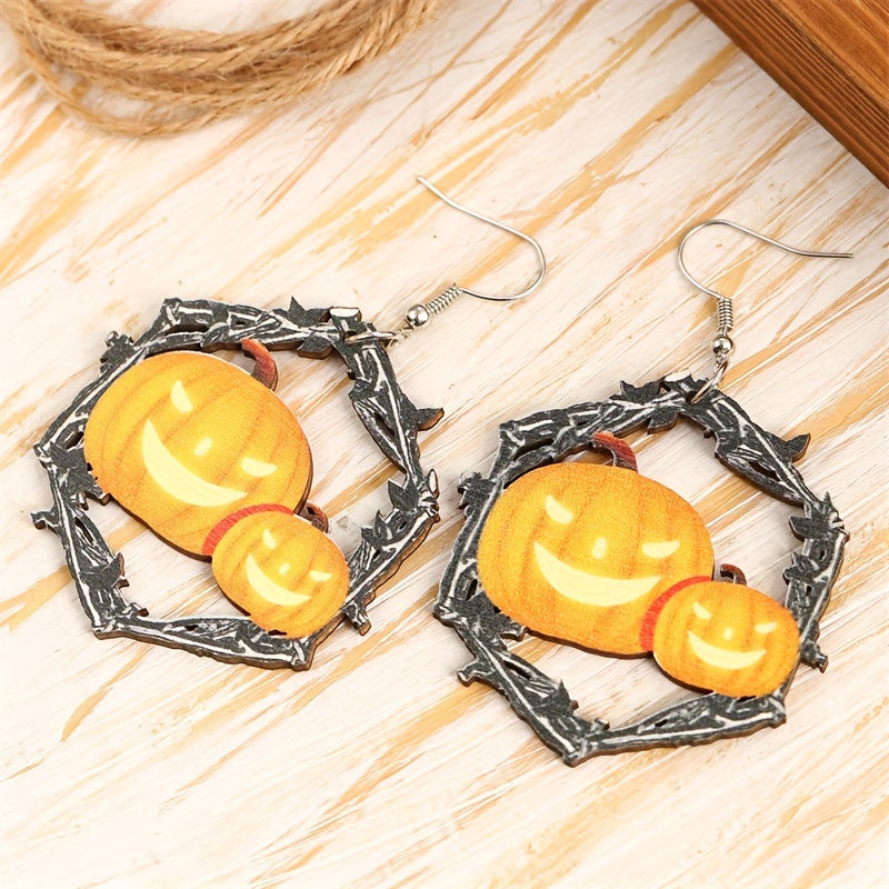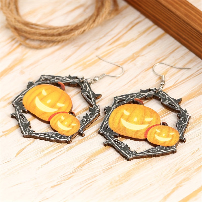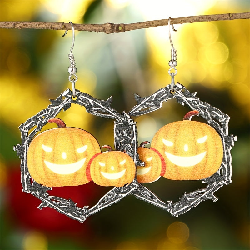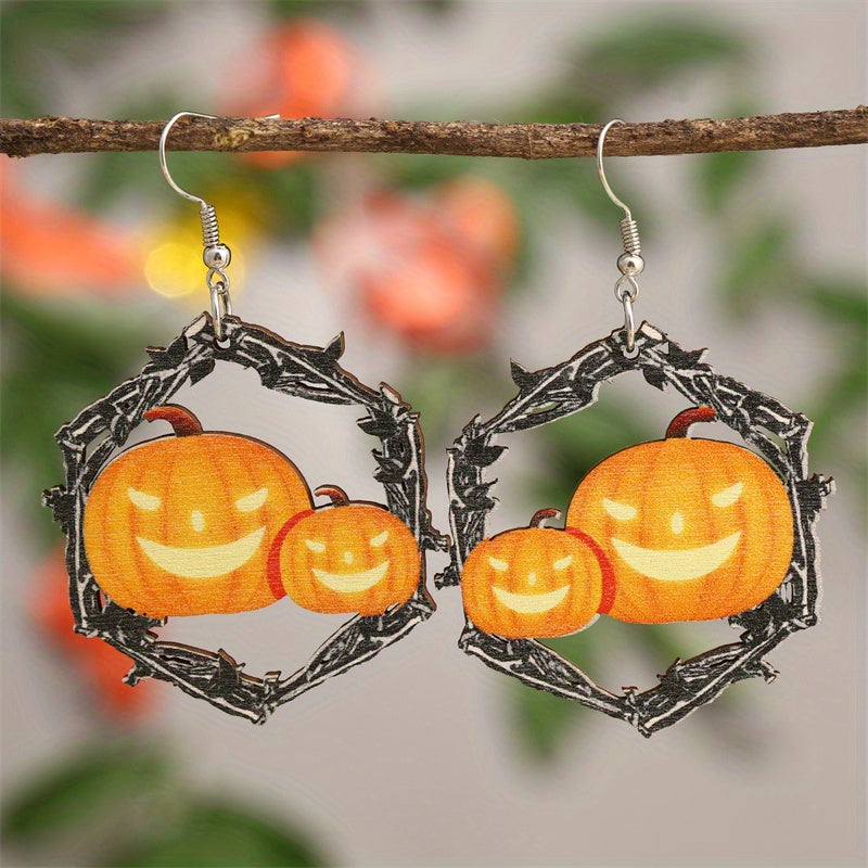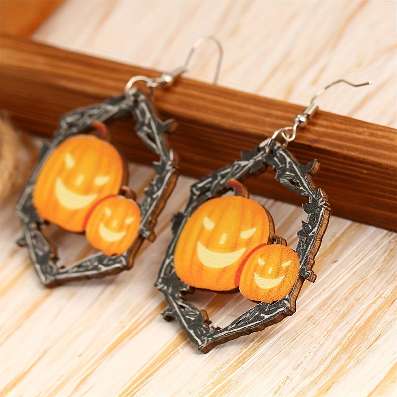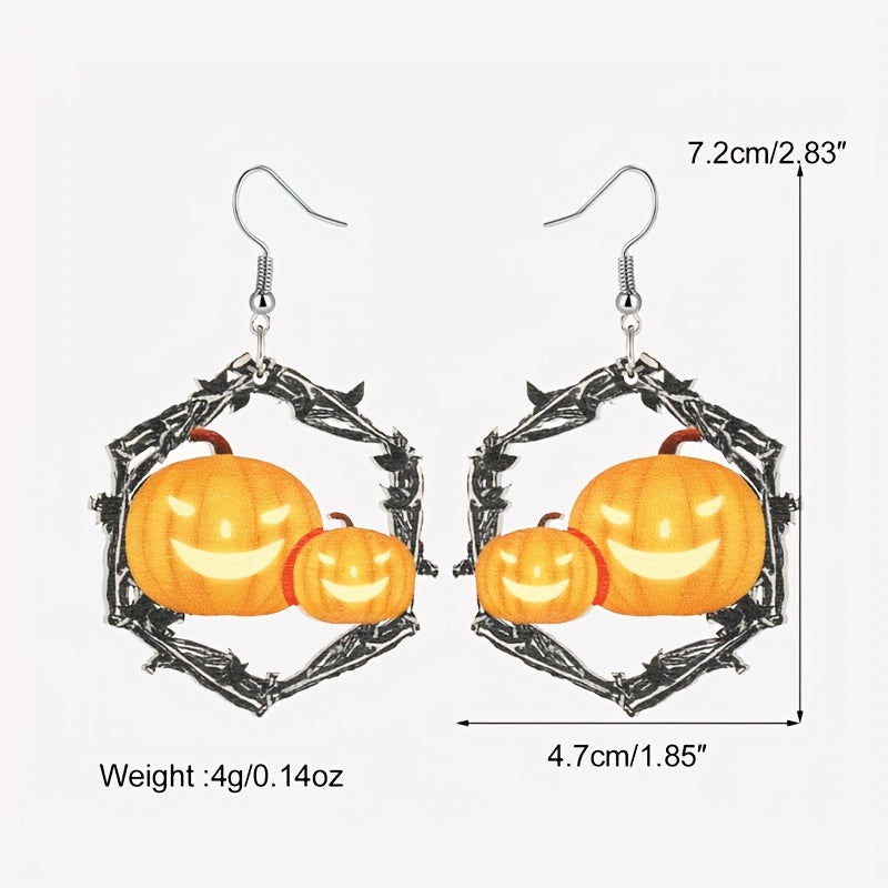 Add a touch of goth punk style to your look with these spooky hollow hexagonal shape earrings featuring horror pumpkin decor. Perfect for Halloween or everyday wear.