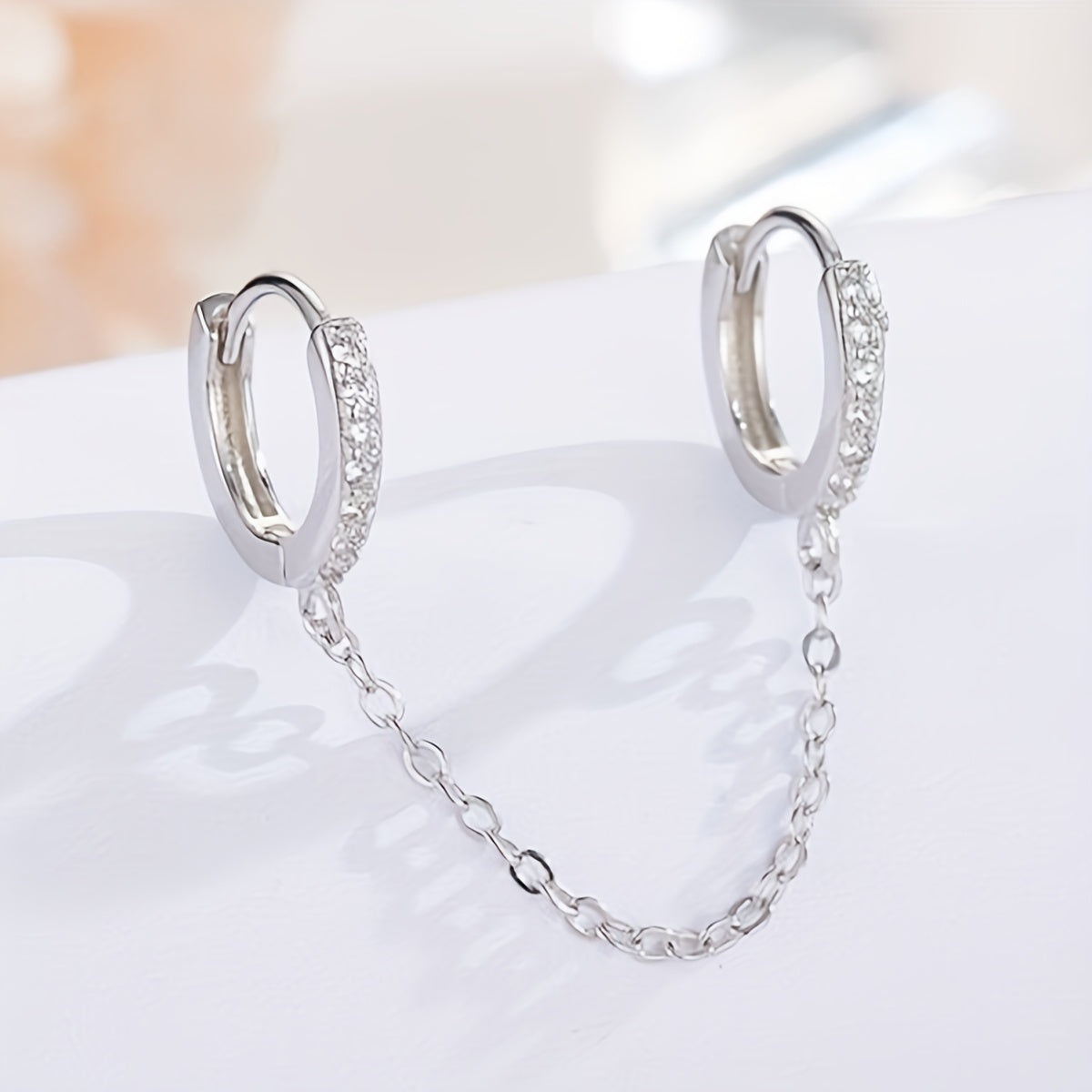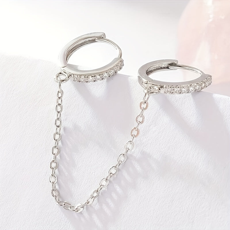 Shine bright with these stunning double ring rhinestone chain earrings that elevate any outfit.