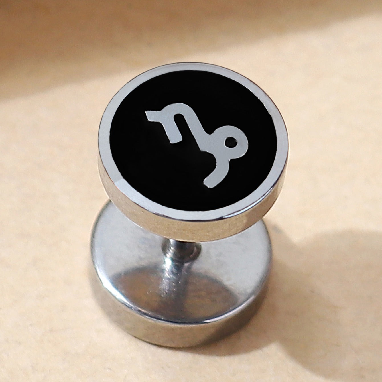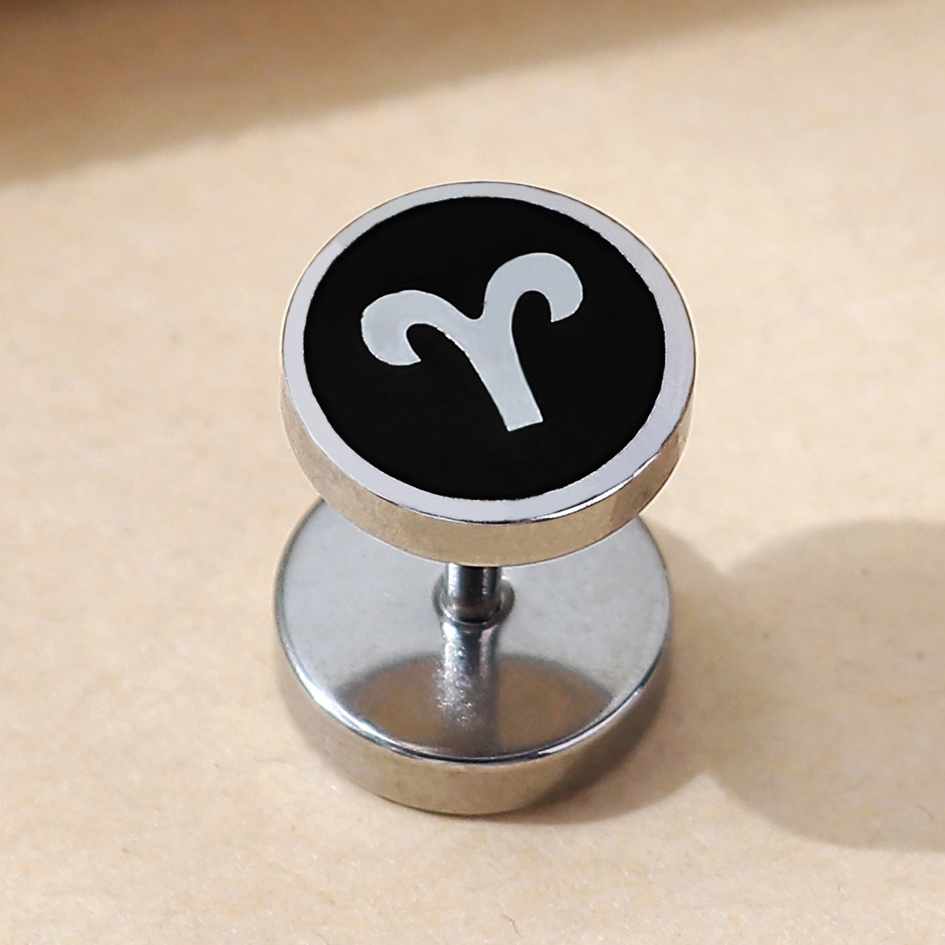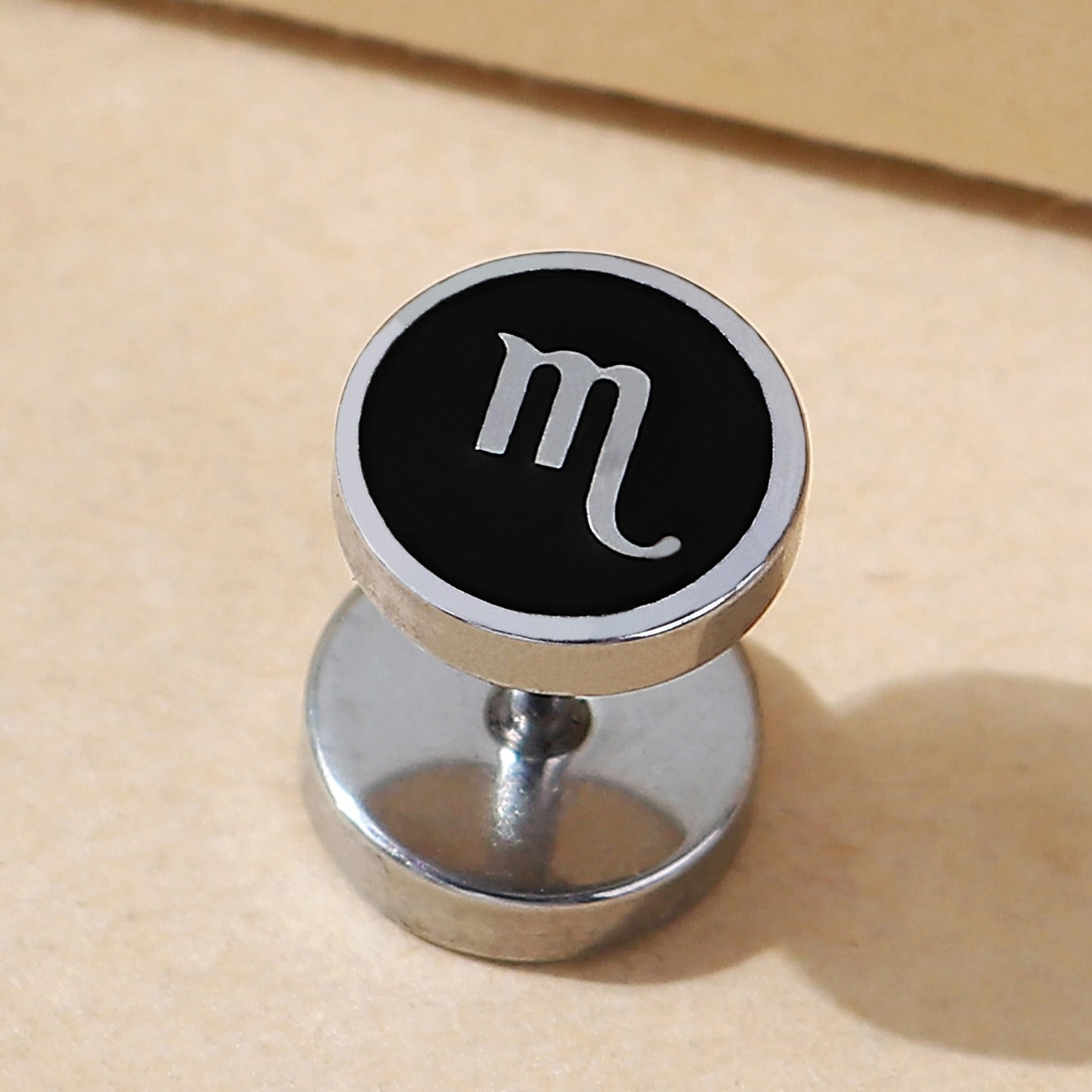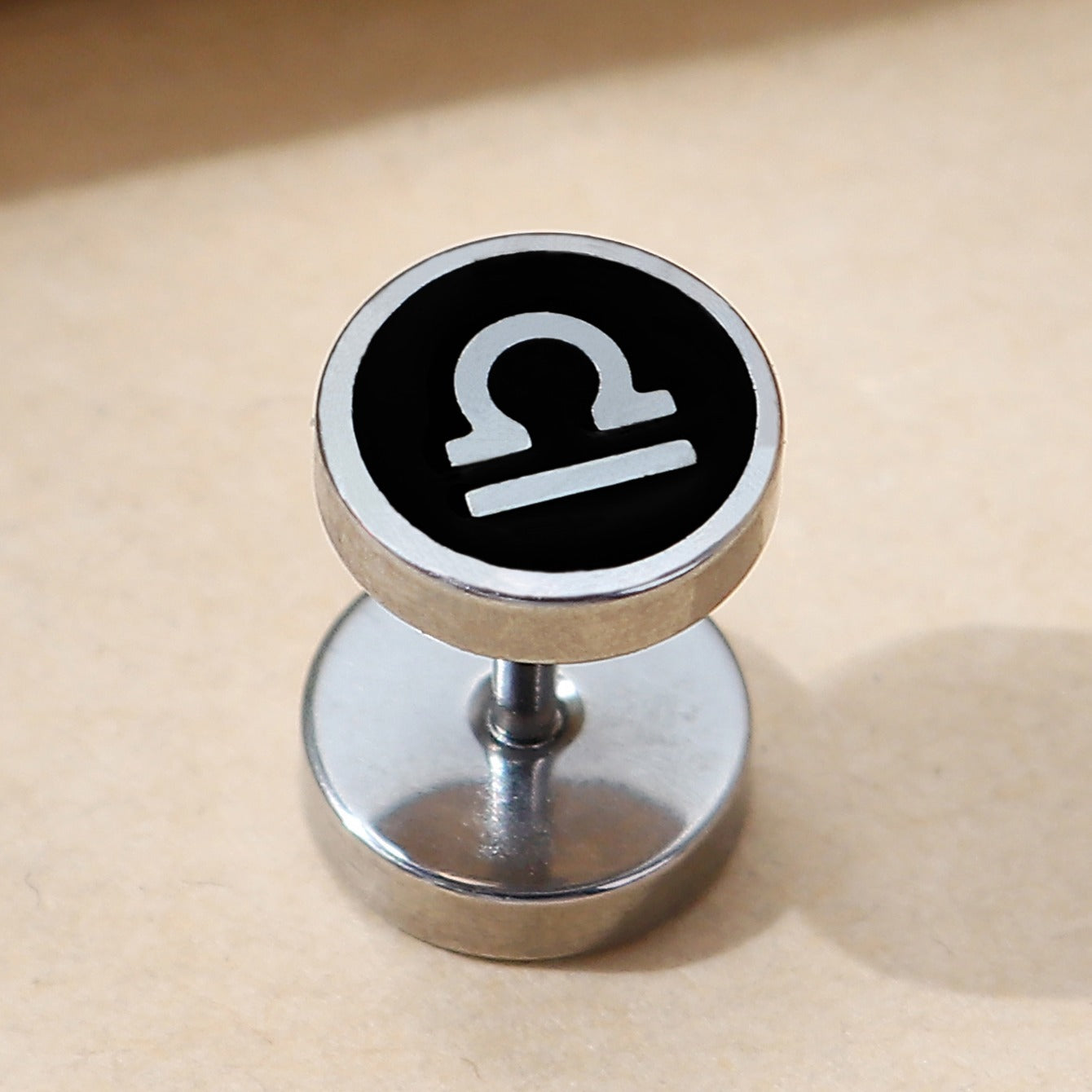 These titanium steel earrings feature a hip hop drip design with twelve constellation patterns.