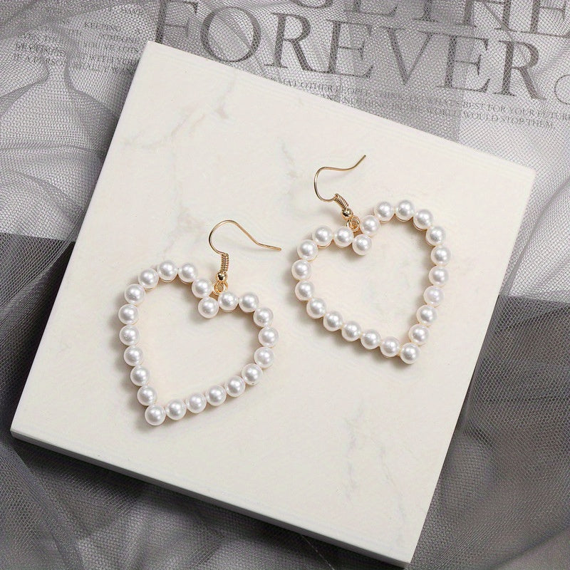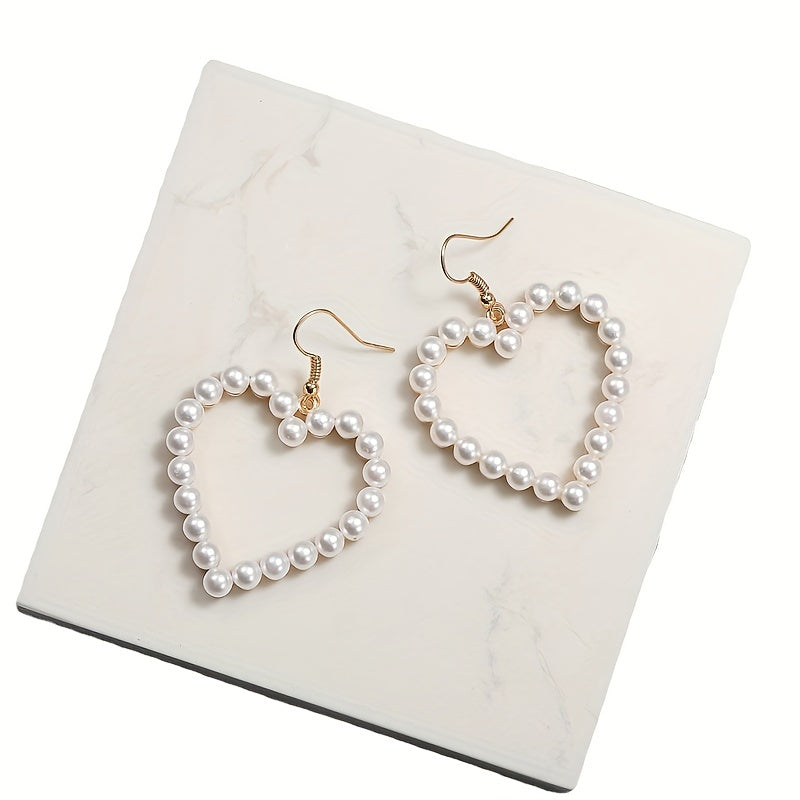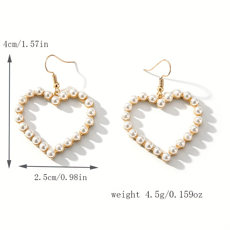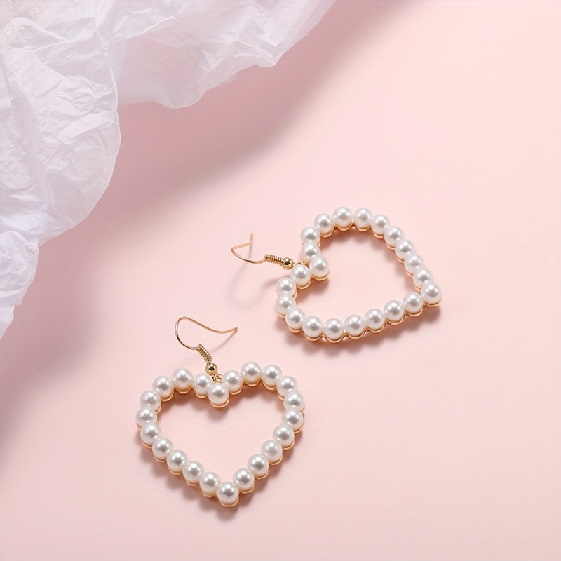 Add a touch of retro Y2K style to your look with these dangle earrings featuring a hollow heart design and full faux pearl decoration. Made of high-quality alloy, these earrings are a perfect gift for any occasion.