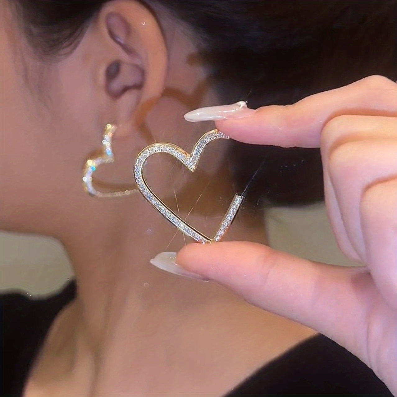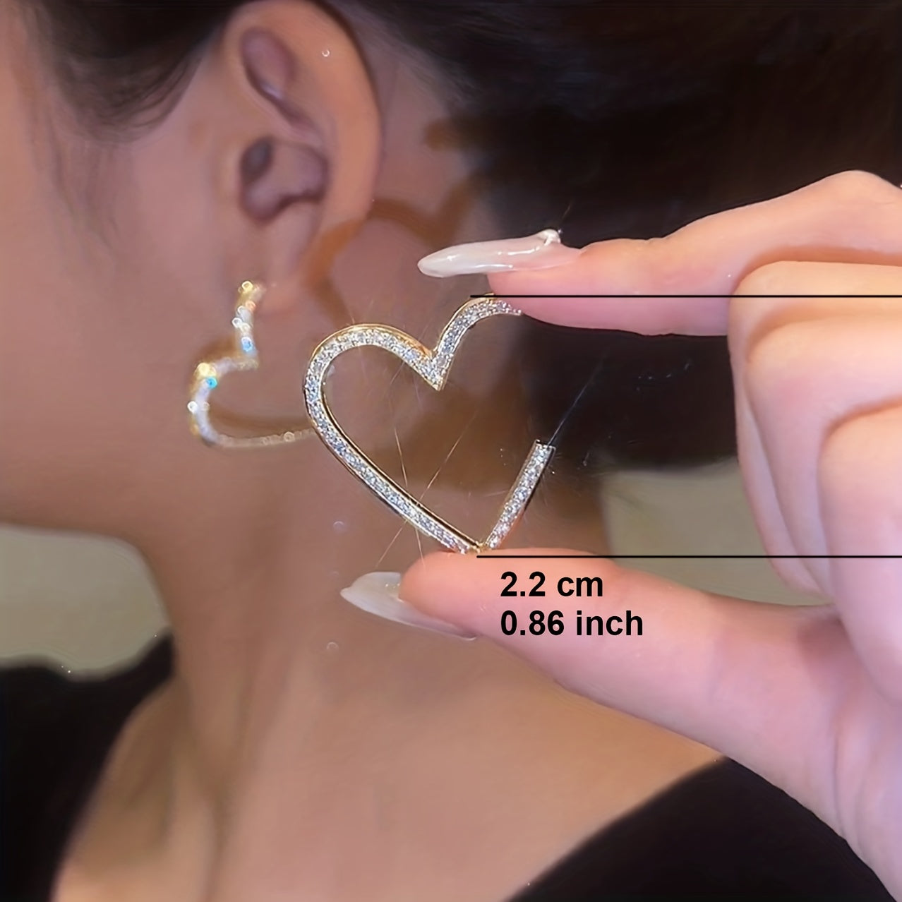 These elegant hoop earrings feature a hollow heart design with sparkling zircon decor. Perfect gift for women, adding a touch of glamour to any outfit.