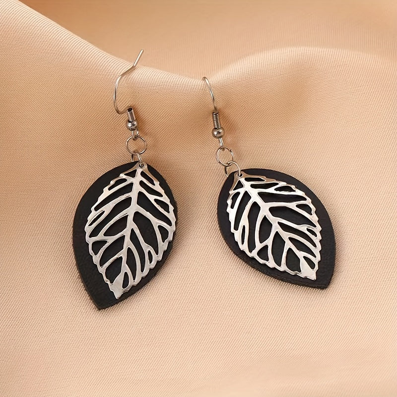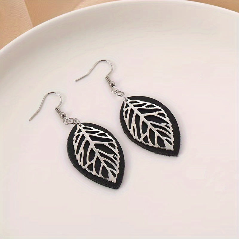 Add a touch of nature to your outfit with these stylish hollow leaf drop earrings made from PU leather. These statement earrings are perfect for any occasion.