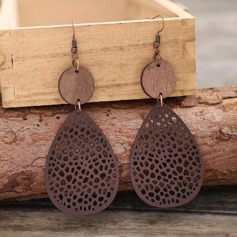 Add a touch of vintage charm to your look with these hollow leaf-shaped PU leather earrings. Perfect for parties, vacations, or as a thoughtful gift for someone special.