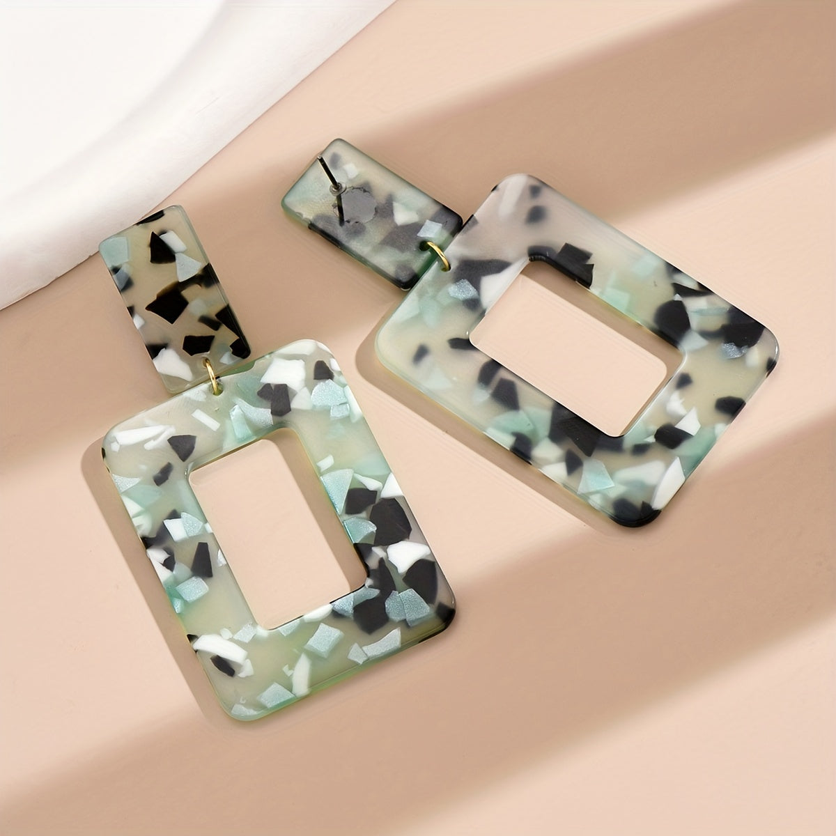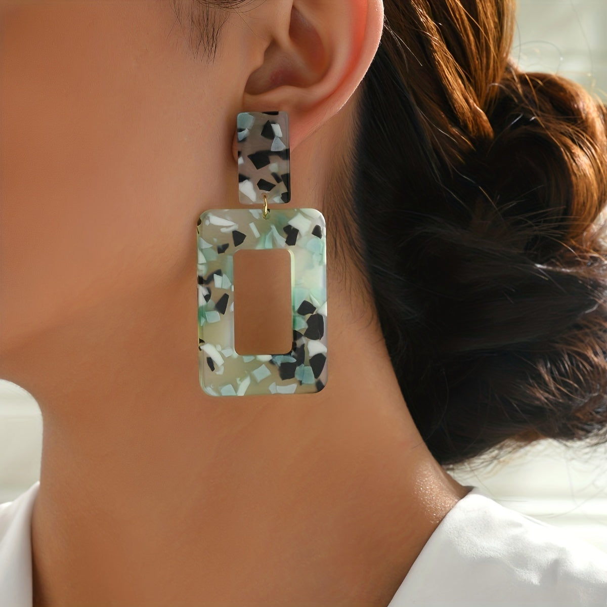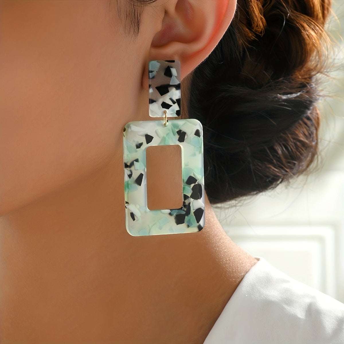 Elevate your style with these vocation-inspired hollow rectangle shape dangle earrings. Made of resin, these unique accessories are perfect for daily wear or as a gift for a fashion-forward female.