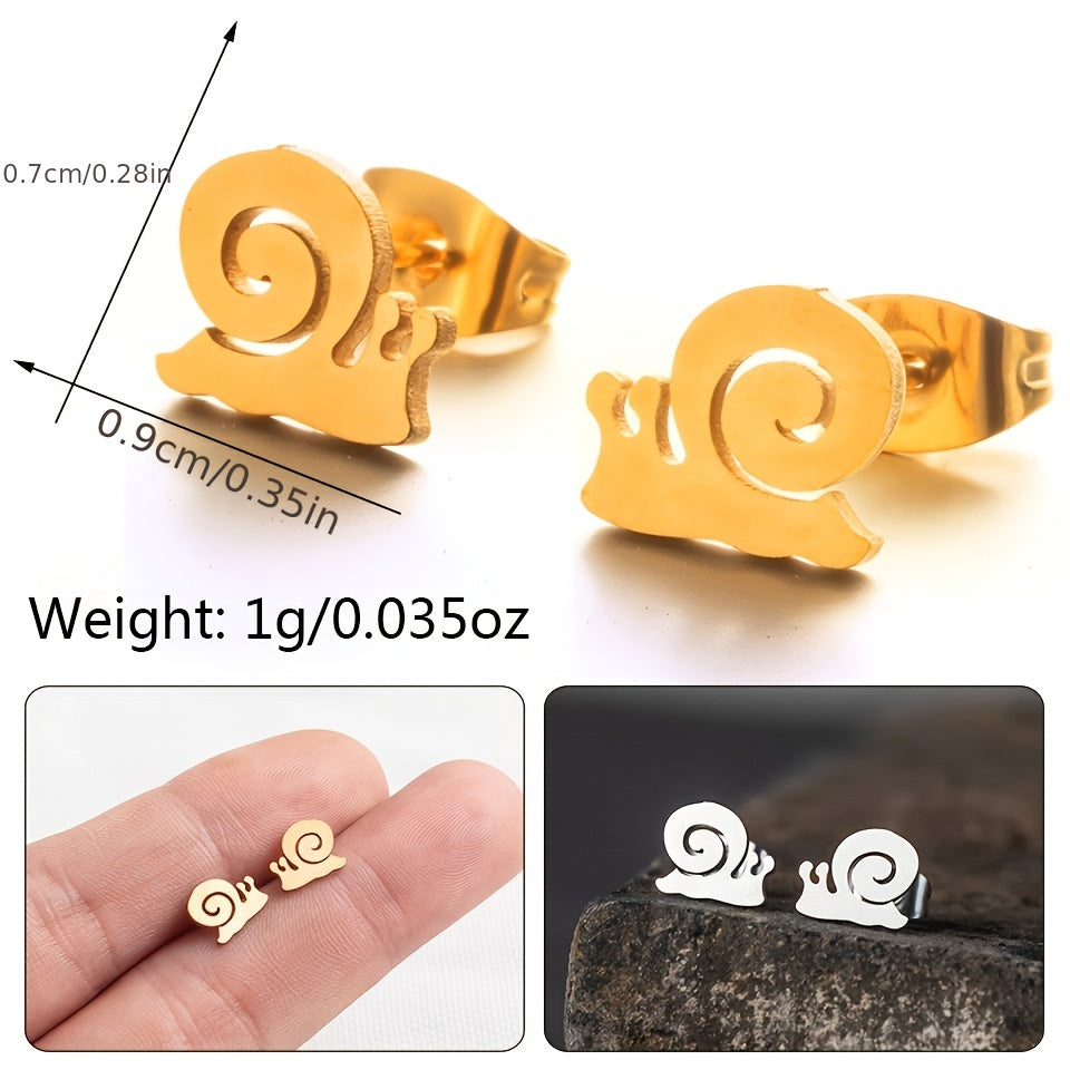 These snail stud earrings are made of high-quality stainless steel, making them durable and hypoallergenic. They feature a hollow design that adds a unique touch to your look.
