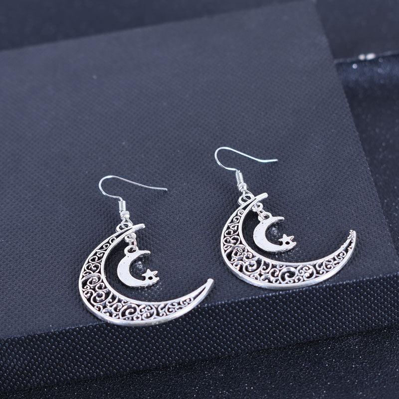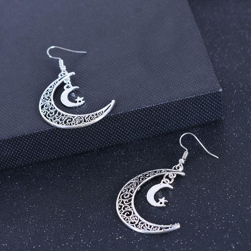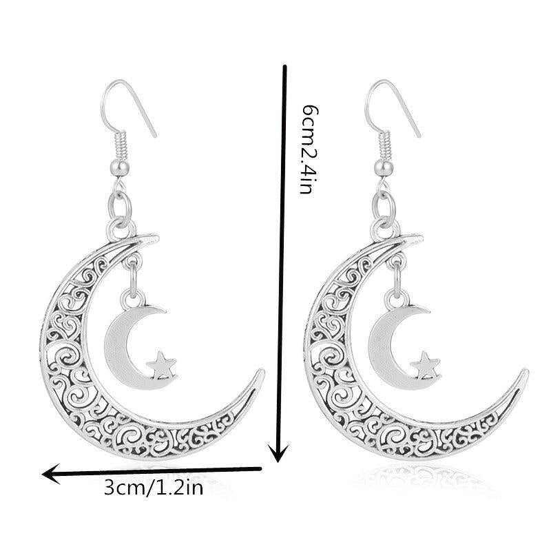 These earrings feature a design of hollow star and moon shapes, perfect for adding a touch of celestial charm to any outfit.