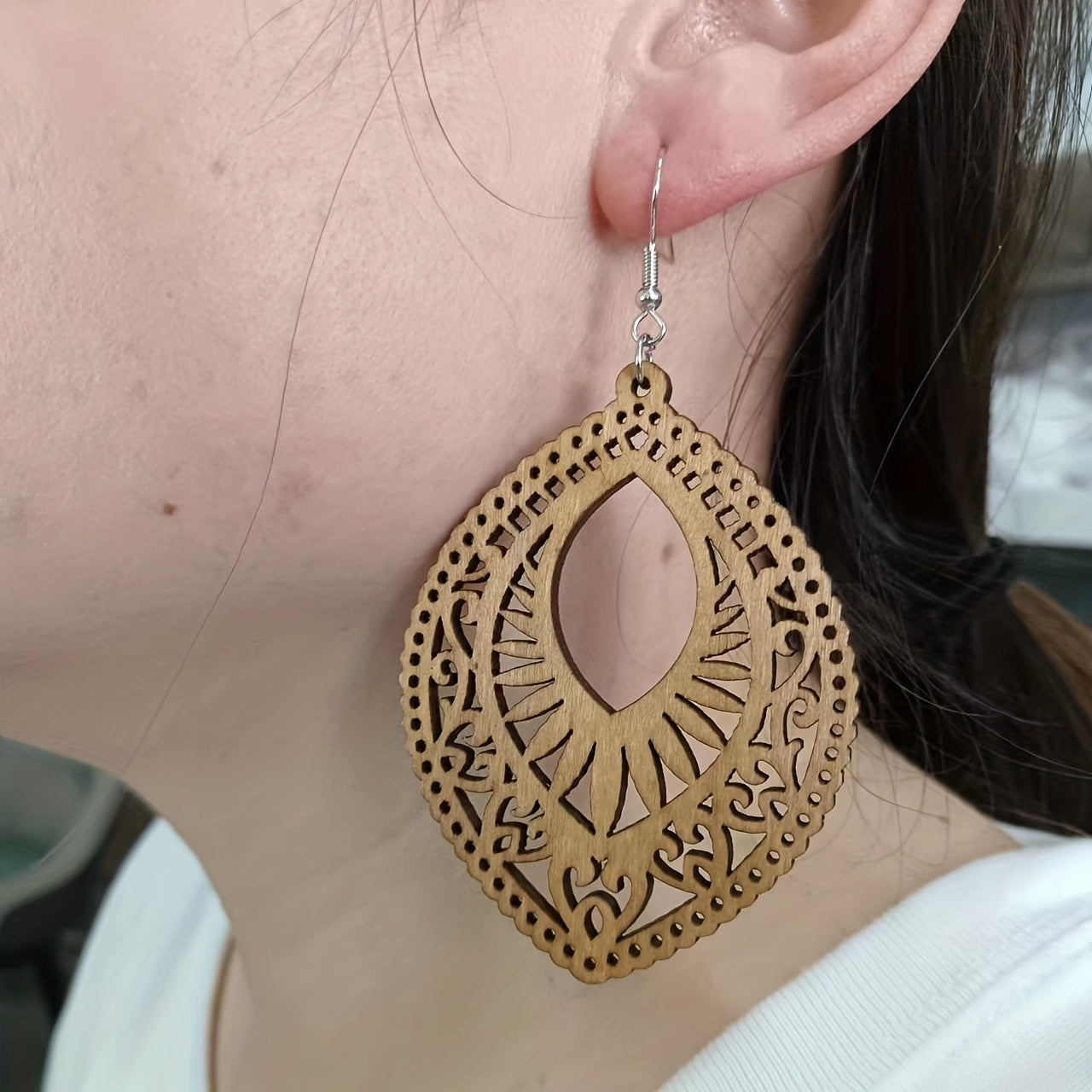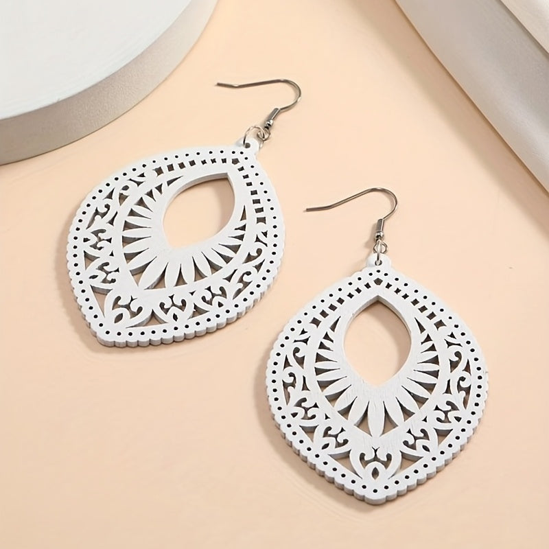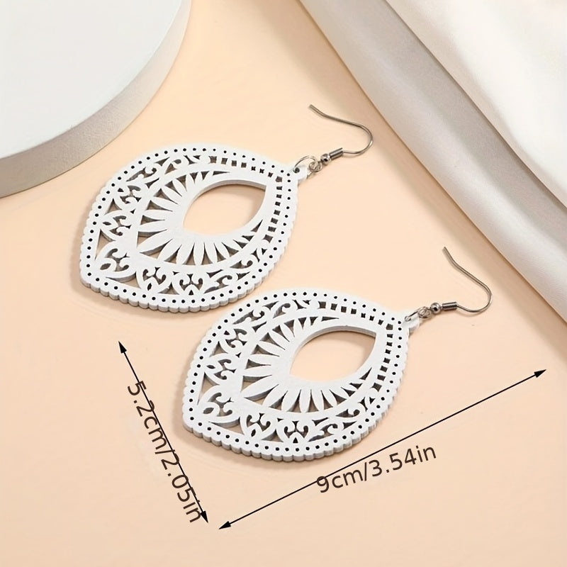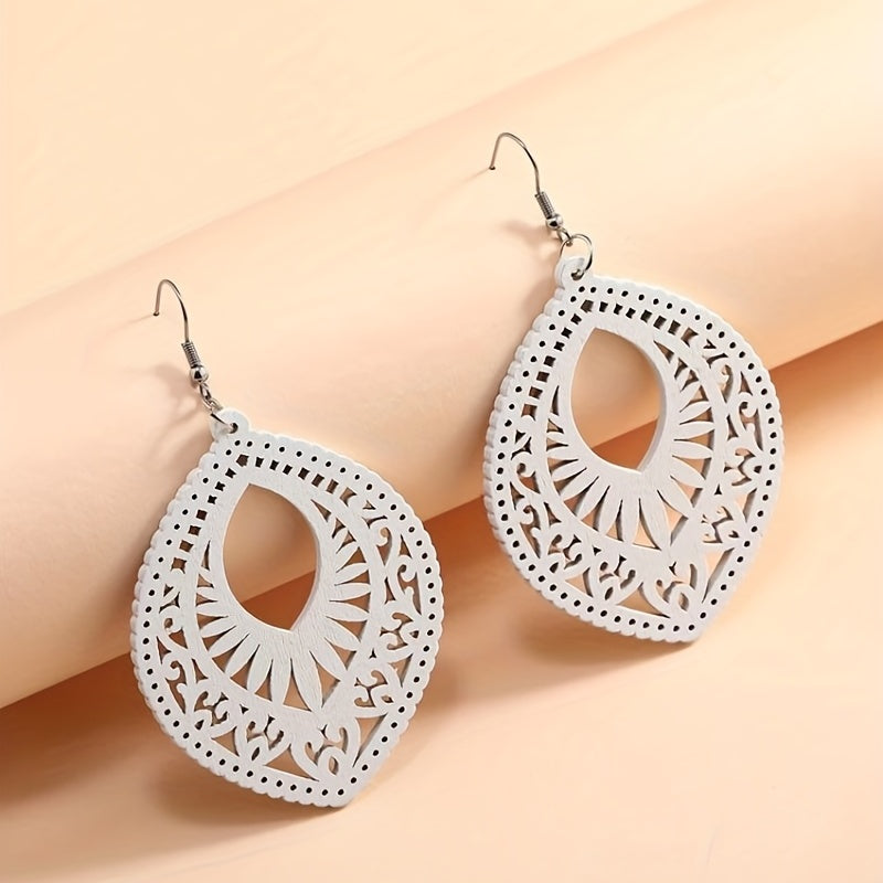 These earrings are a perfect retro boho accessory with a unique hollow water drop shape design. Made from high-quality wood, these dangle earrings are a great gift for women.