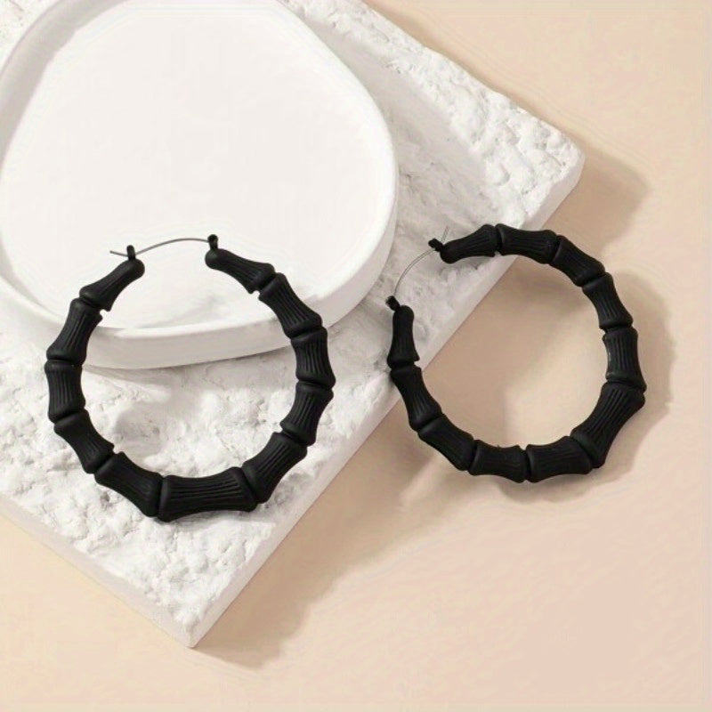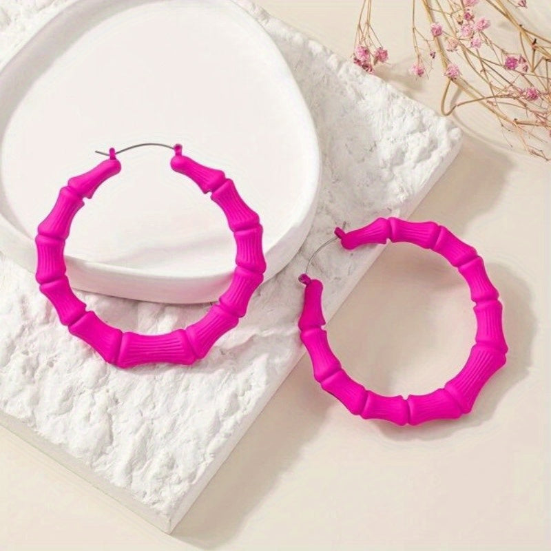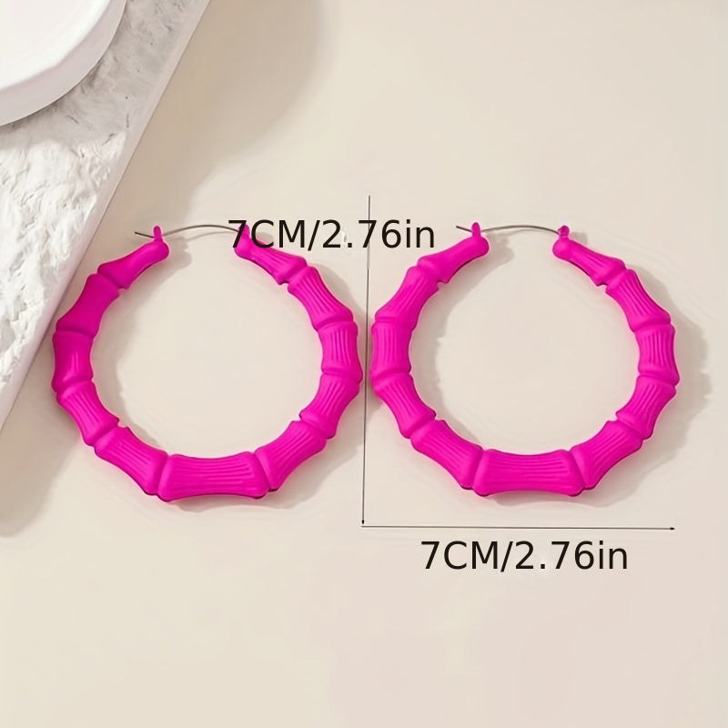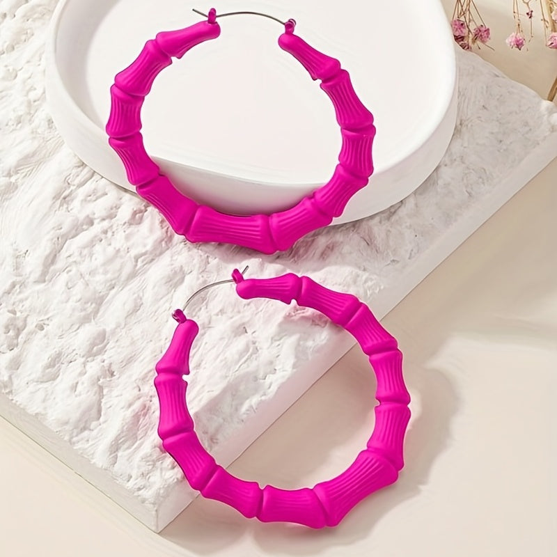 Add a pop of color to your look with these hot pink hoop earrings featuring a bamboo joint pattern. These retro bohemian style earrings are made of high-quality alloy with 18K gold plating, making them a perfect gift for a fashion-forward female.