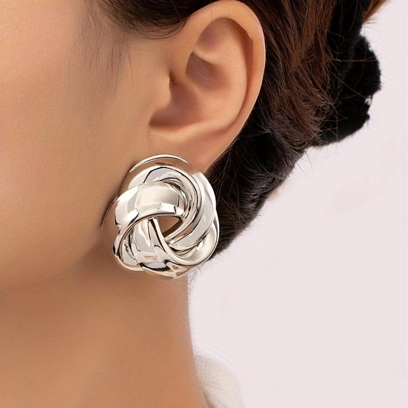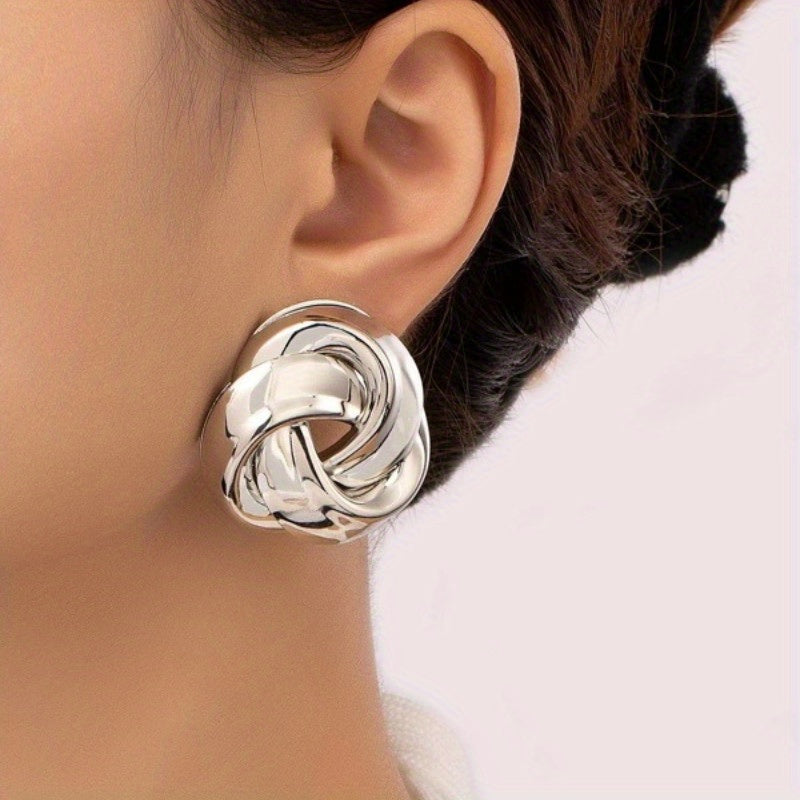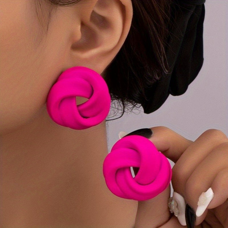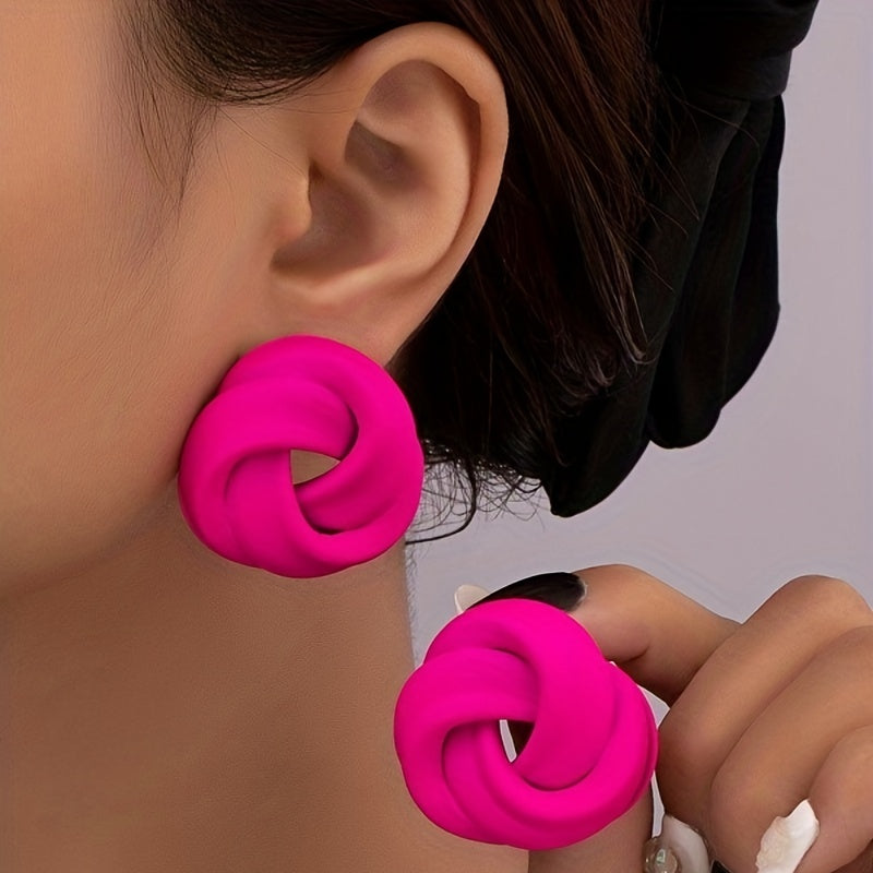 Elevate your look with these retro bohemian style flower stud earrings featuring hot pink, golden, and silvery accents. Perfect for holiday events or everyday wear.