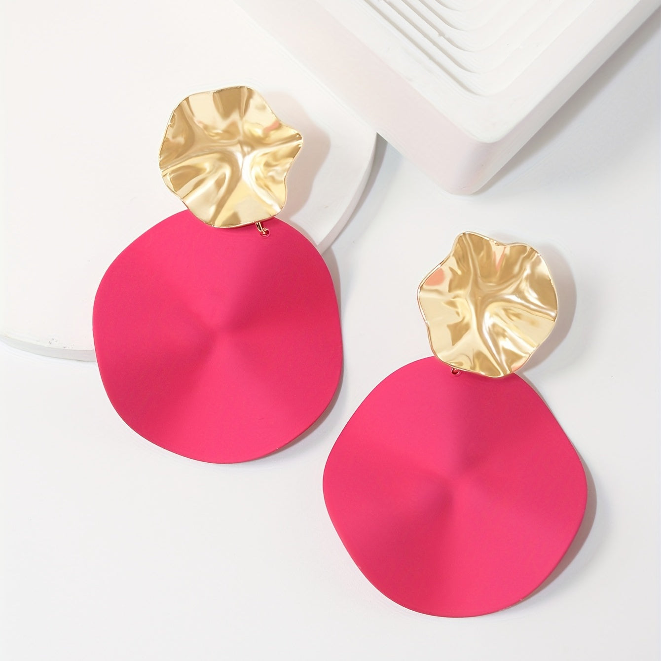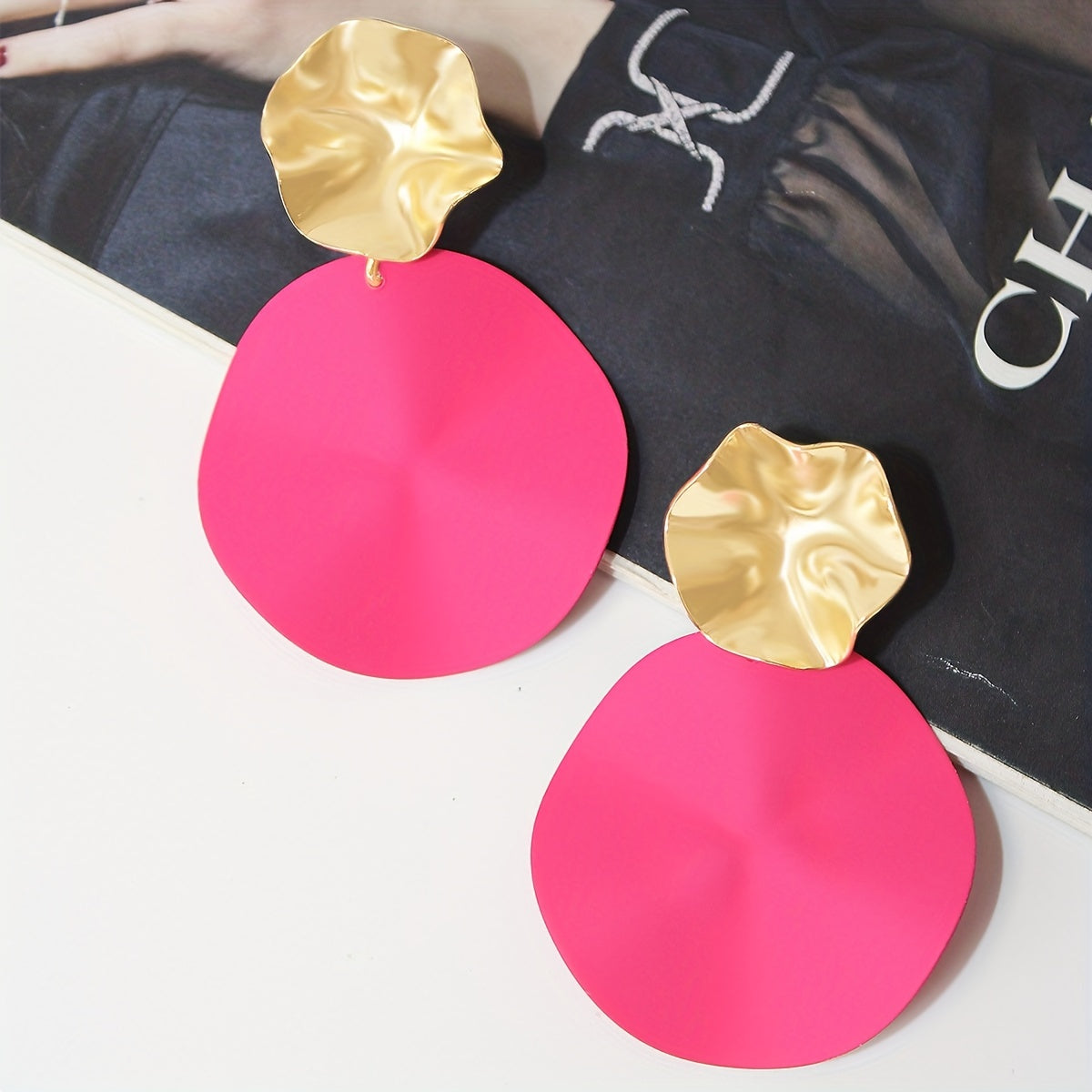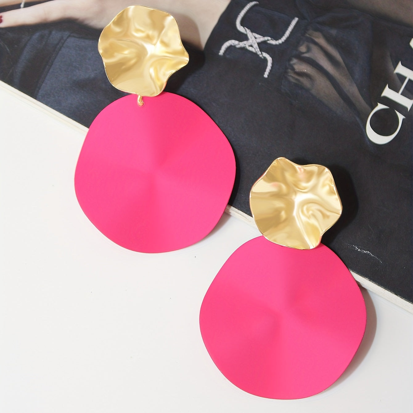 These hot pink earrings are perfect for adding a pop of color to your vocation style. Made with iron and 18K plated, they are a great souvenir from your travels.