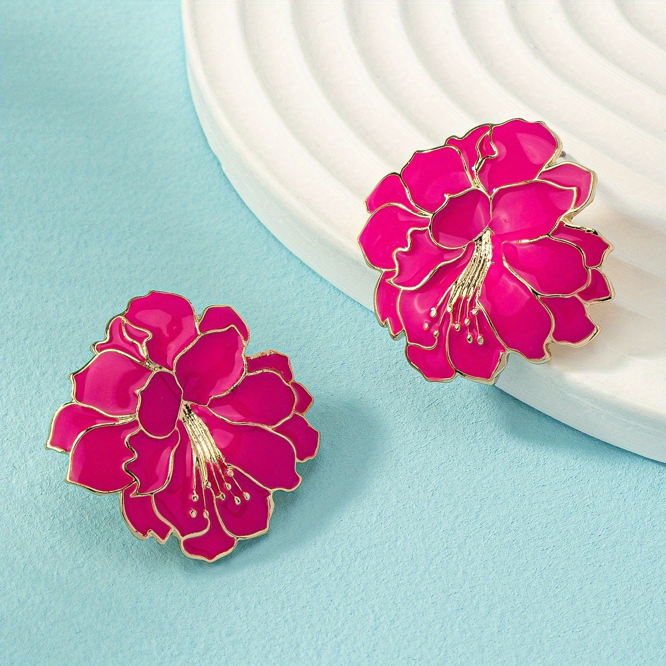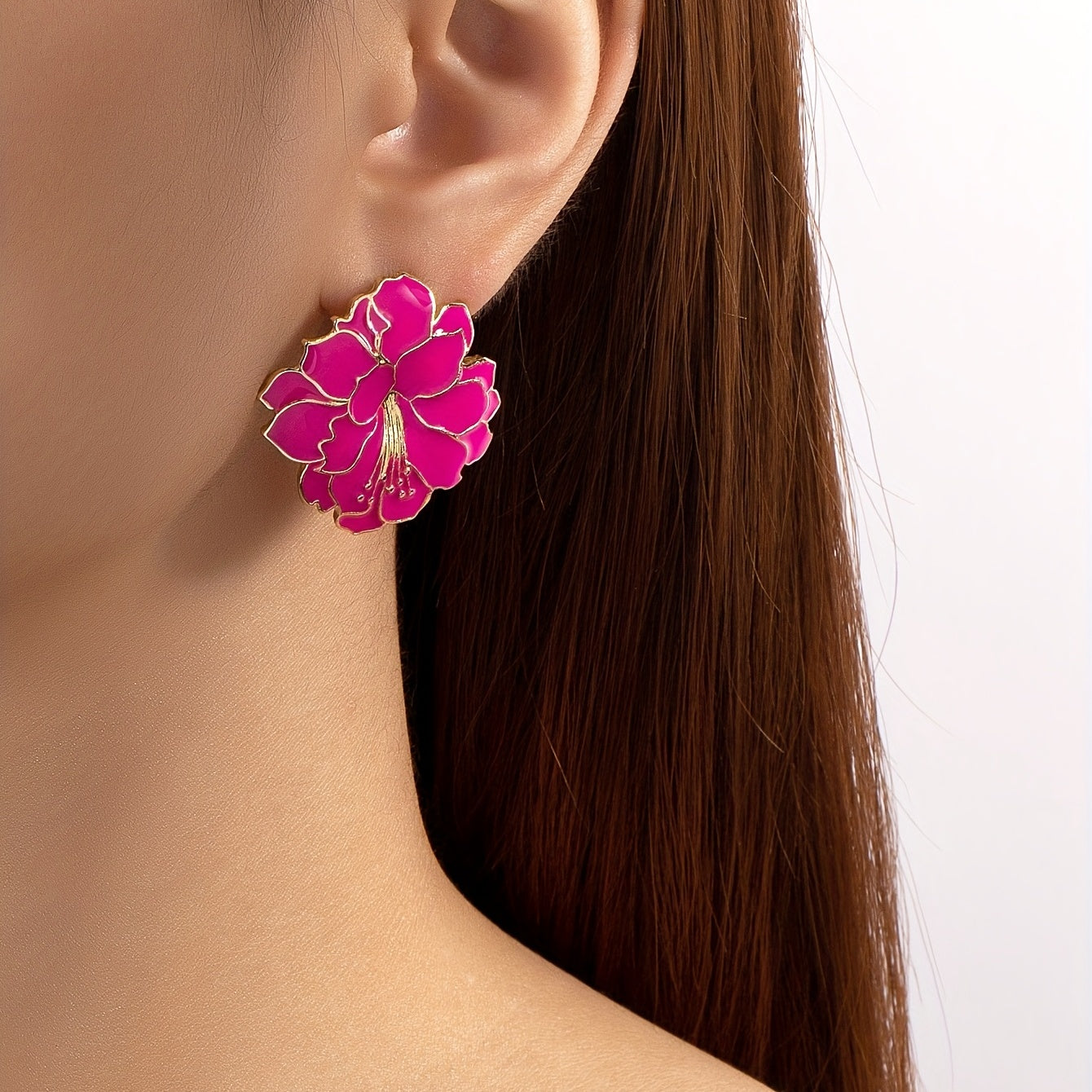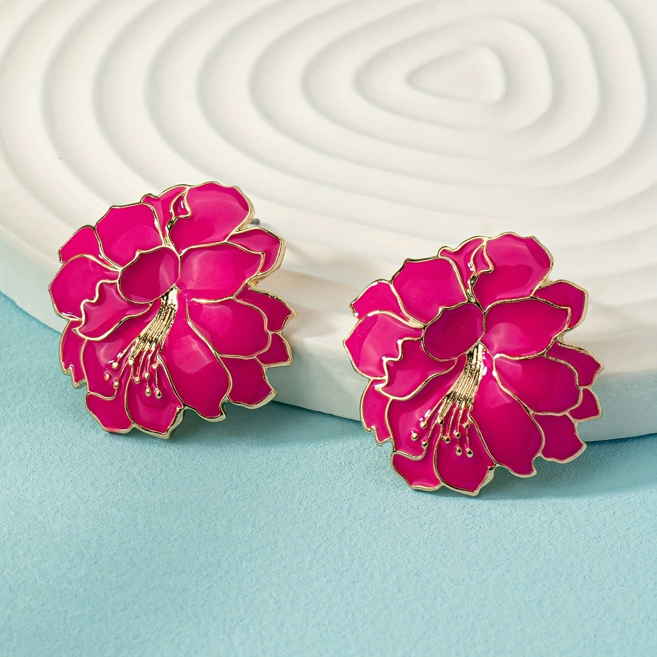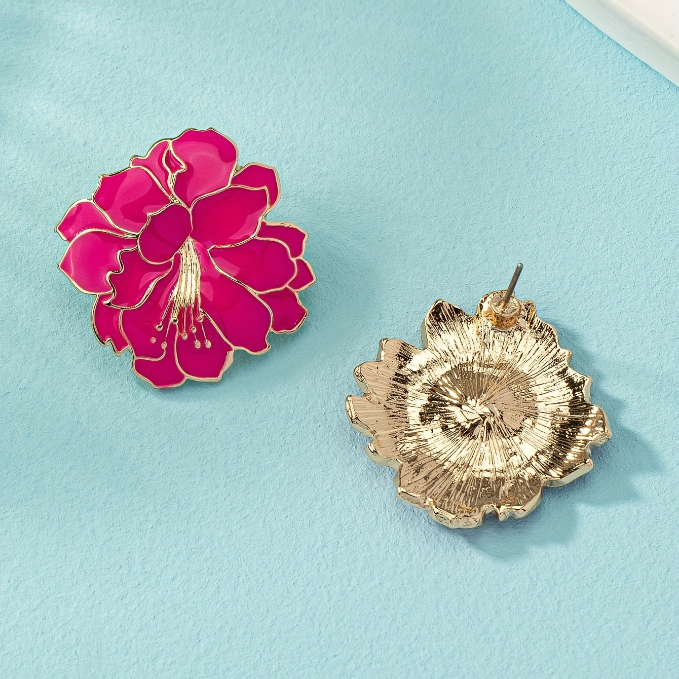 These hot pink lotus enamel stud earrings are perfect for a sexy leisure style. Made of quality alloy with 18K plating, they make a delicate gift for females.