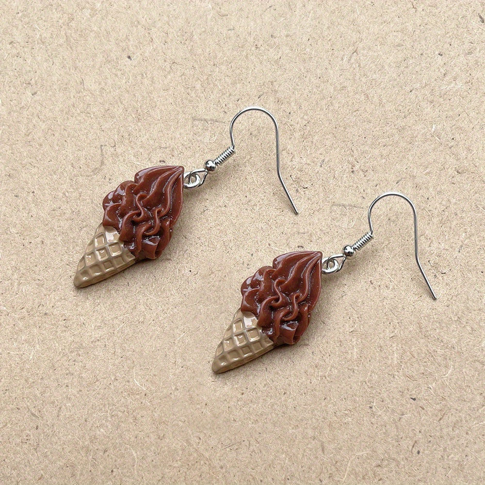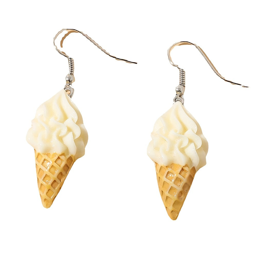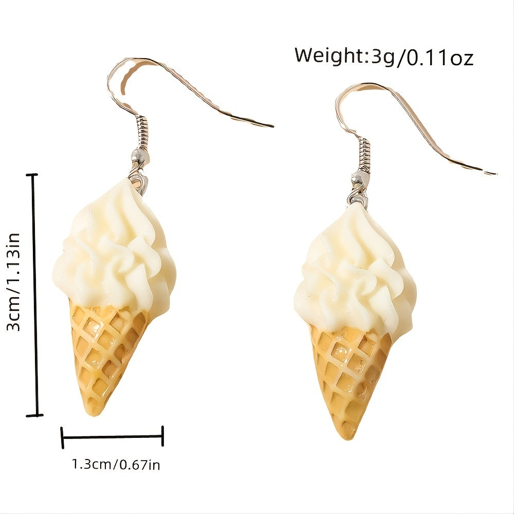 Add a sweet touch to your outfit with these ice cream resin drop dangle earrings. Perfect for parties and as a fun accessory.