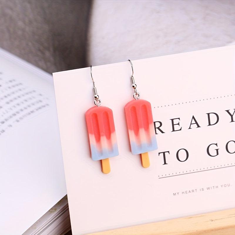 These creative ice sucker dangle earrings are a perfect gift for the summer season. Made in Japanese style with plastic material, they add a fun touch to your outfit.
