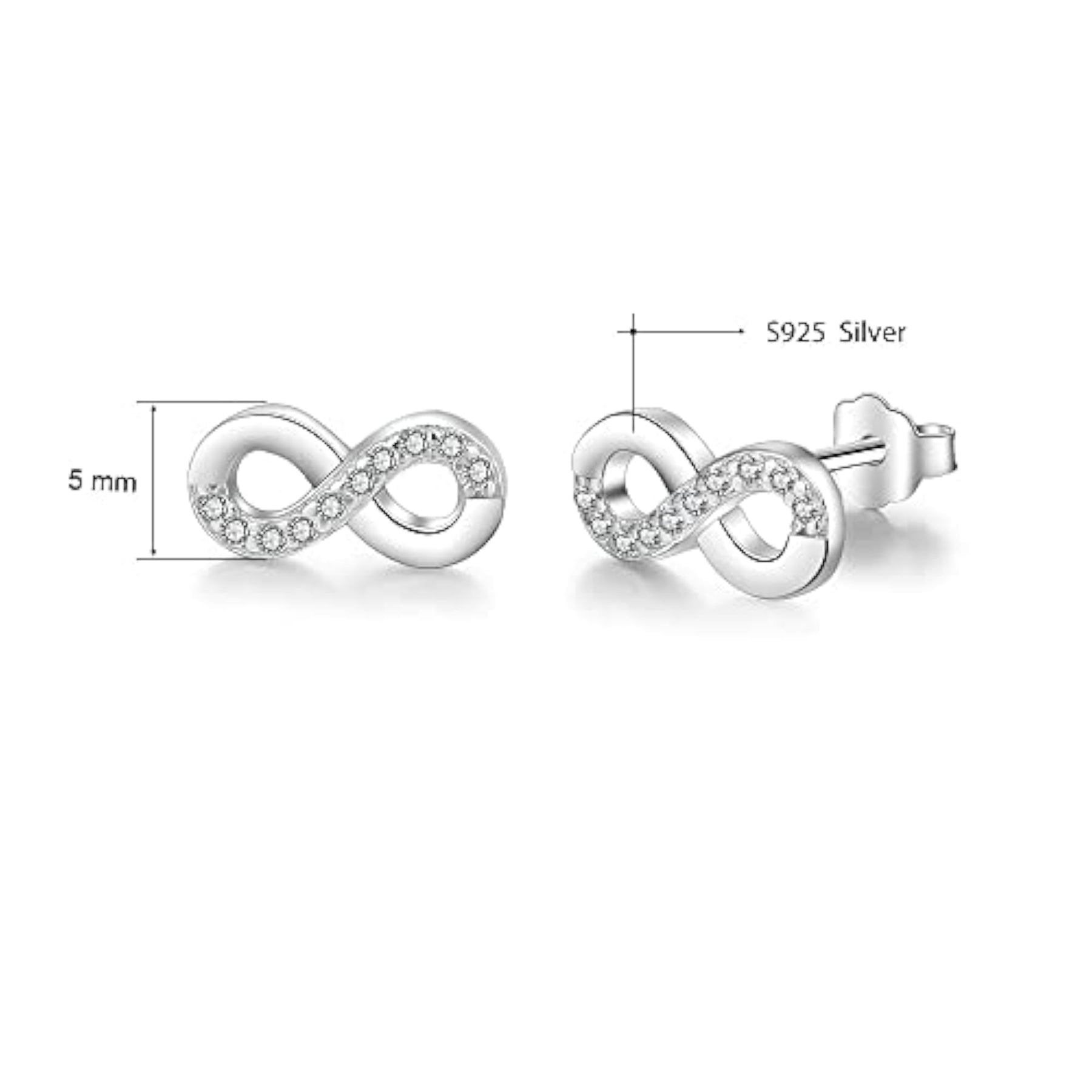 Enhance your style with these stunning infinity motif stud earrings featuring inlaid cubic zirconia. Perfect for girls and women who love a touch of sparkle.