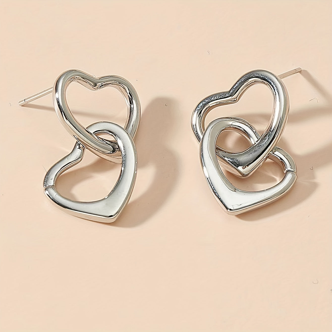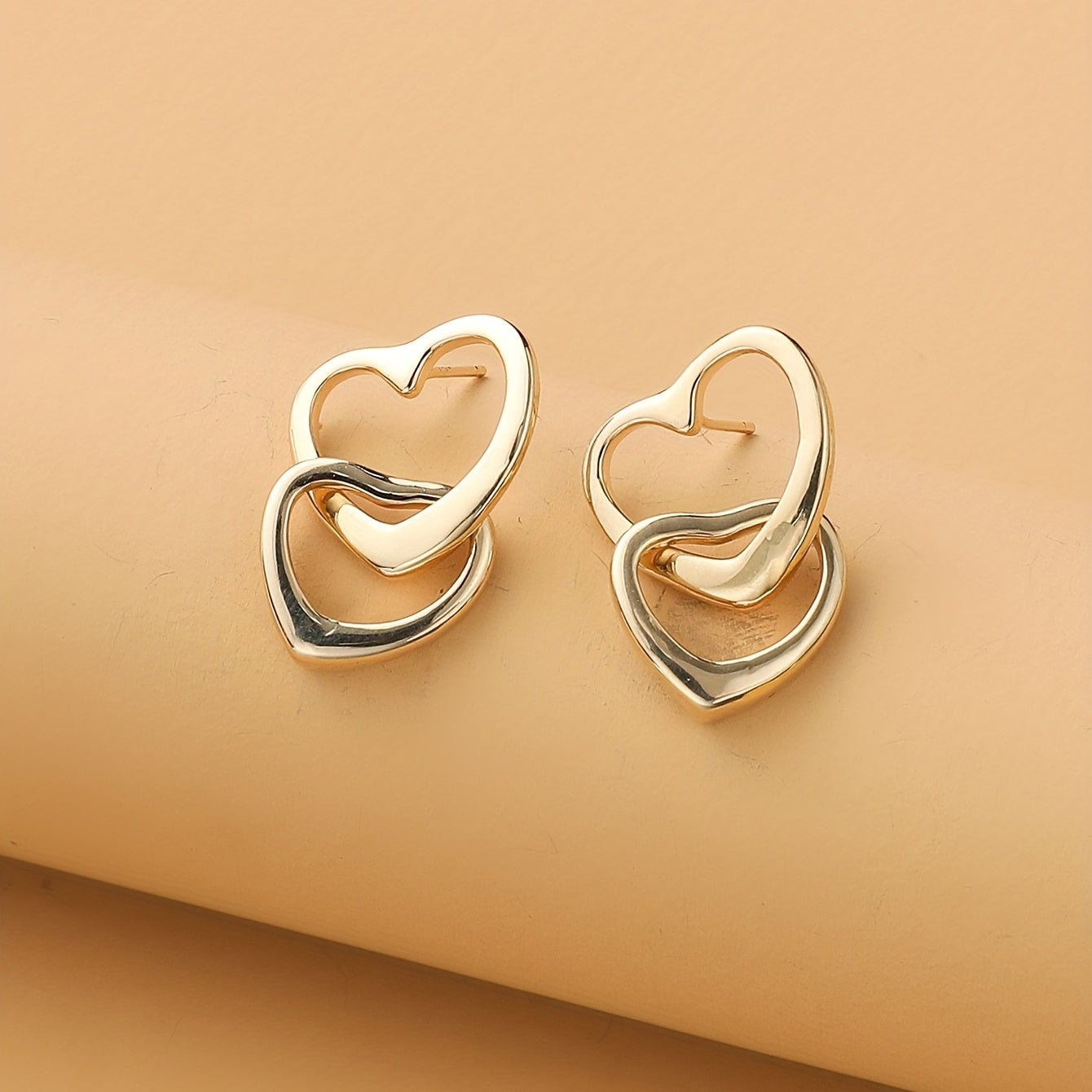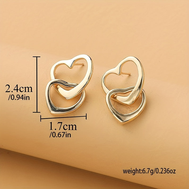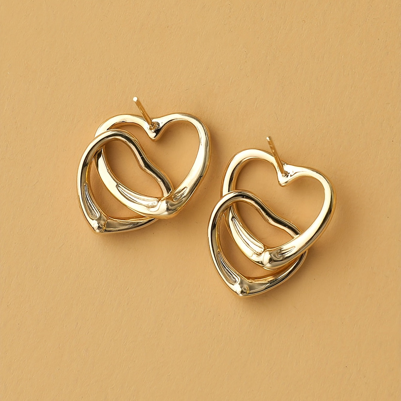 Add a touch of love to your outfit with these interlocking heart stud earrings. These heart-shaped earrings are perfect for everyday wear or special occasions.